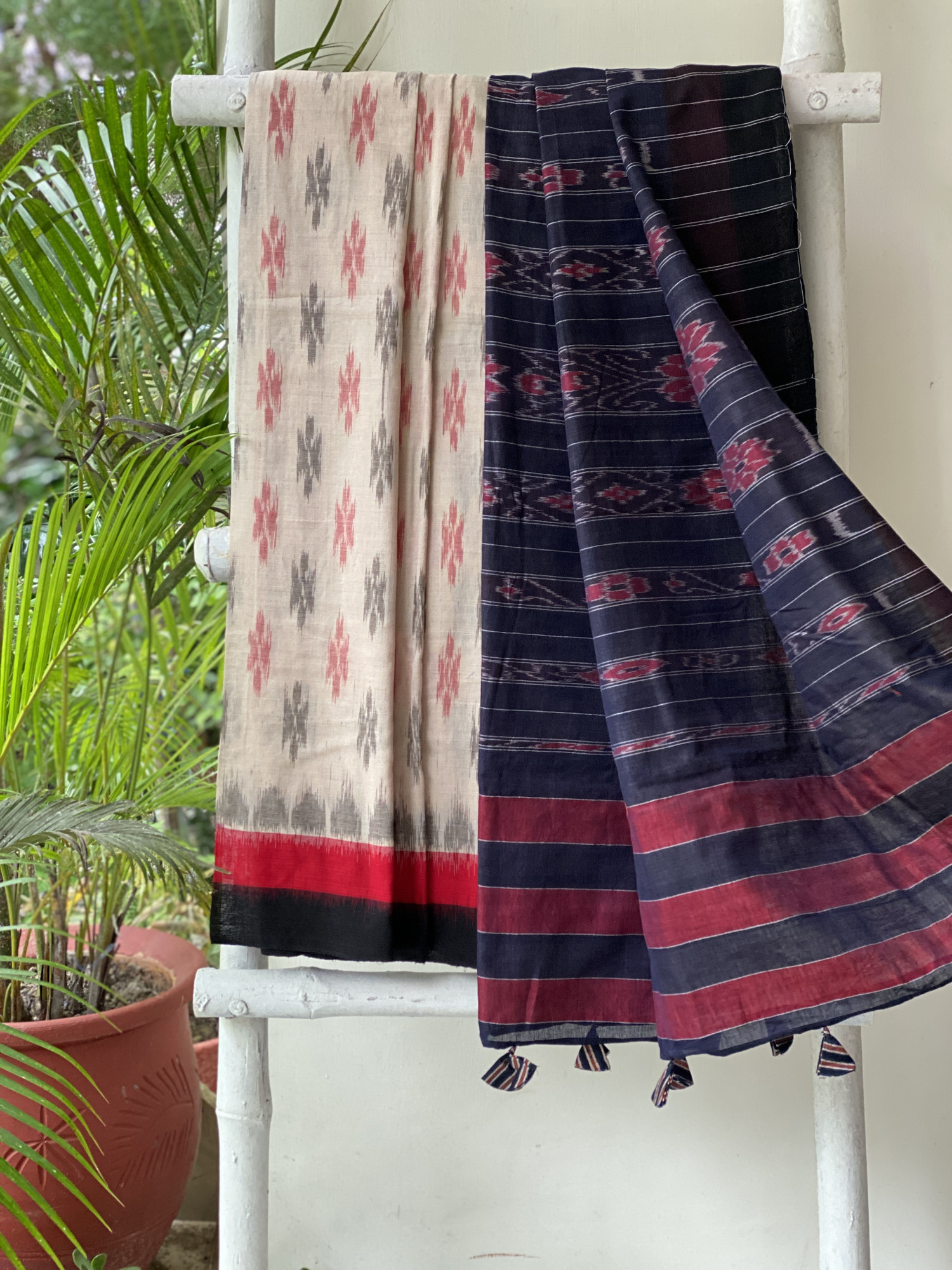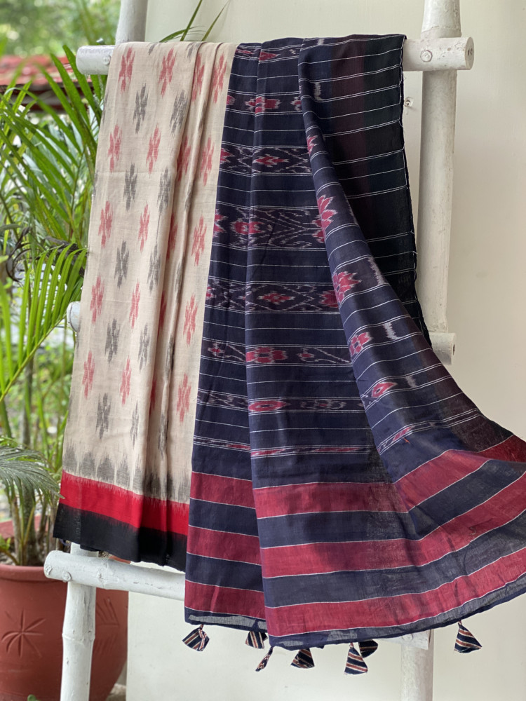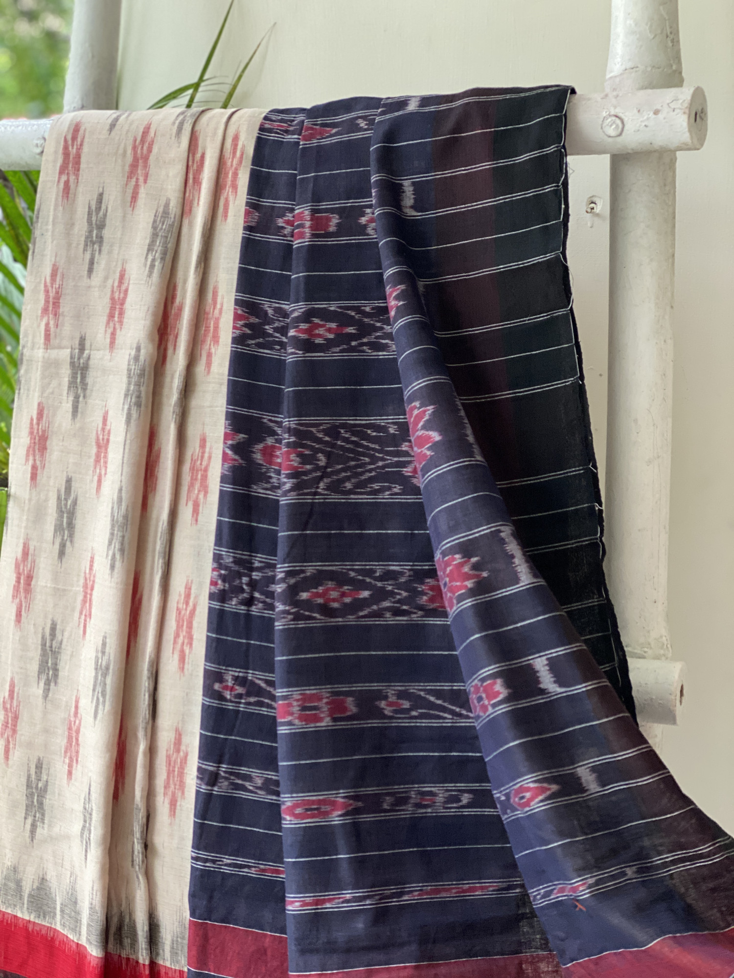 'Maniabandha' - hand woven ikkat saris from Maniabandha village, Odisha which use technique of 'Bandha ' tie & dye and comprises of unique motifs & colors.