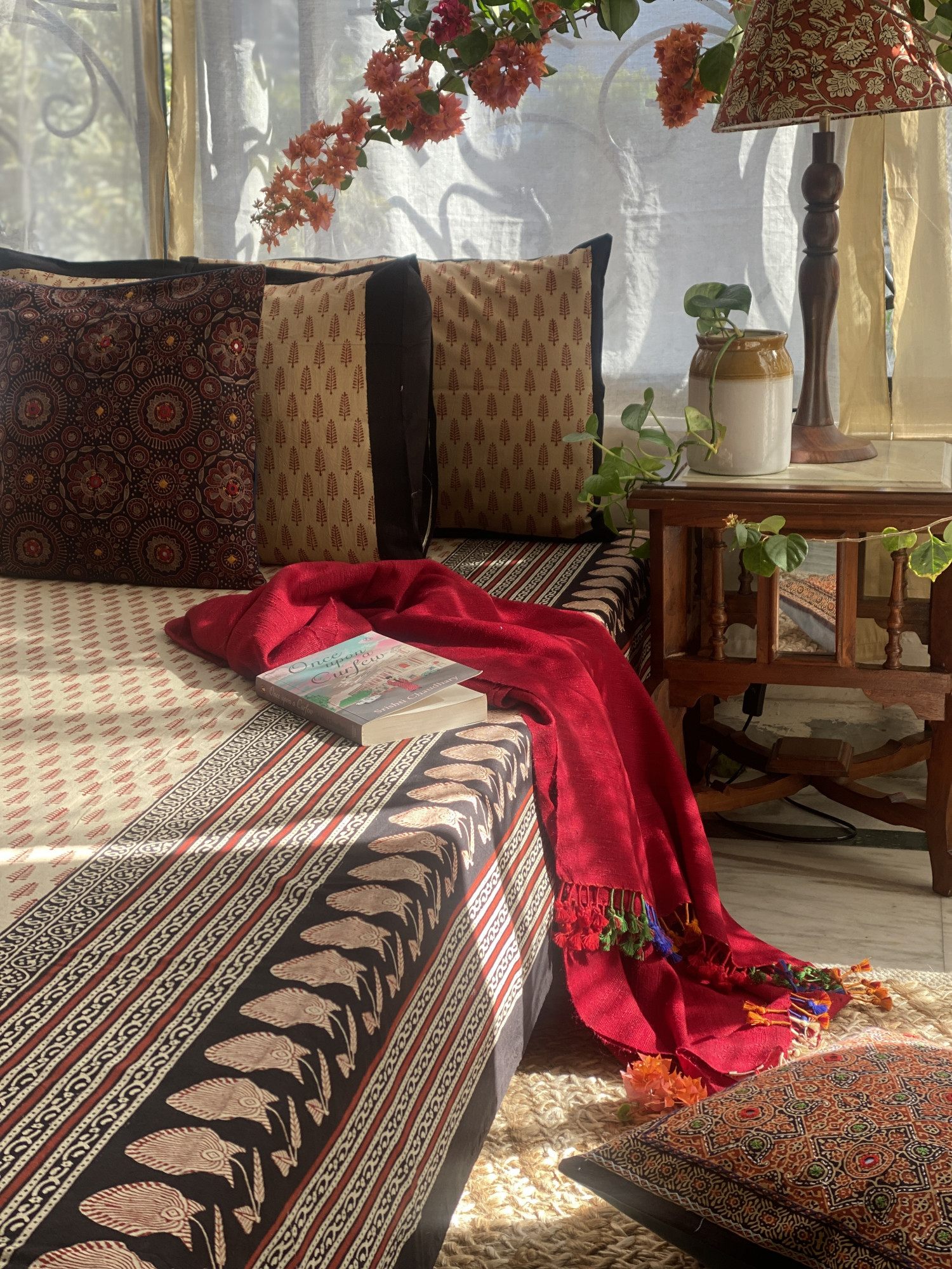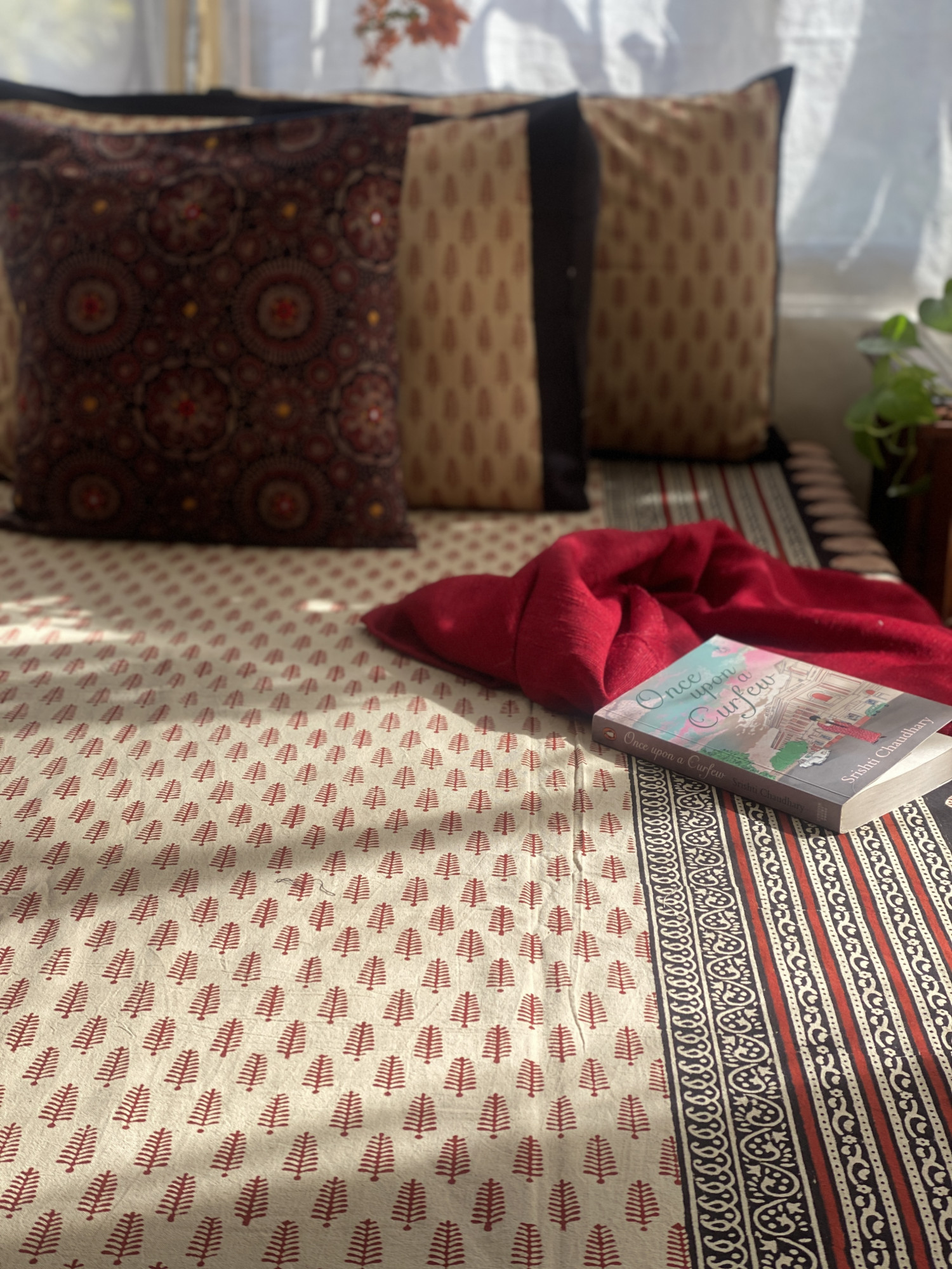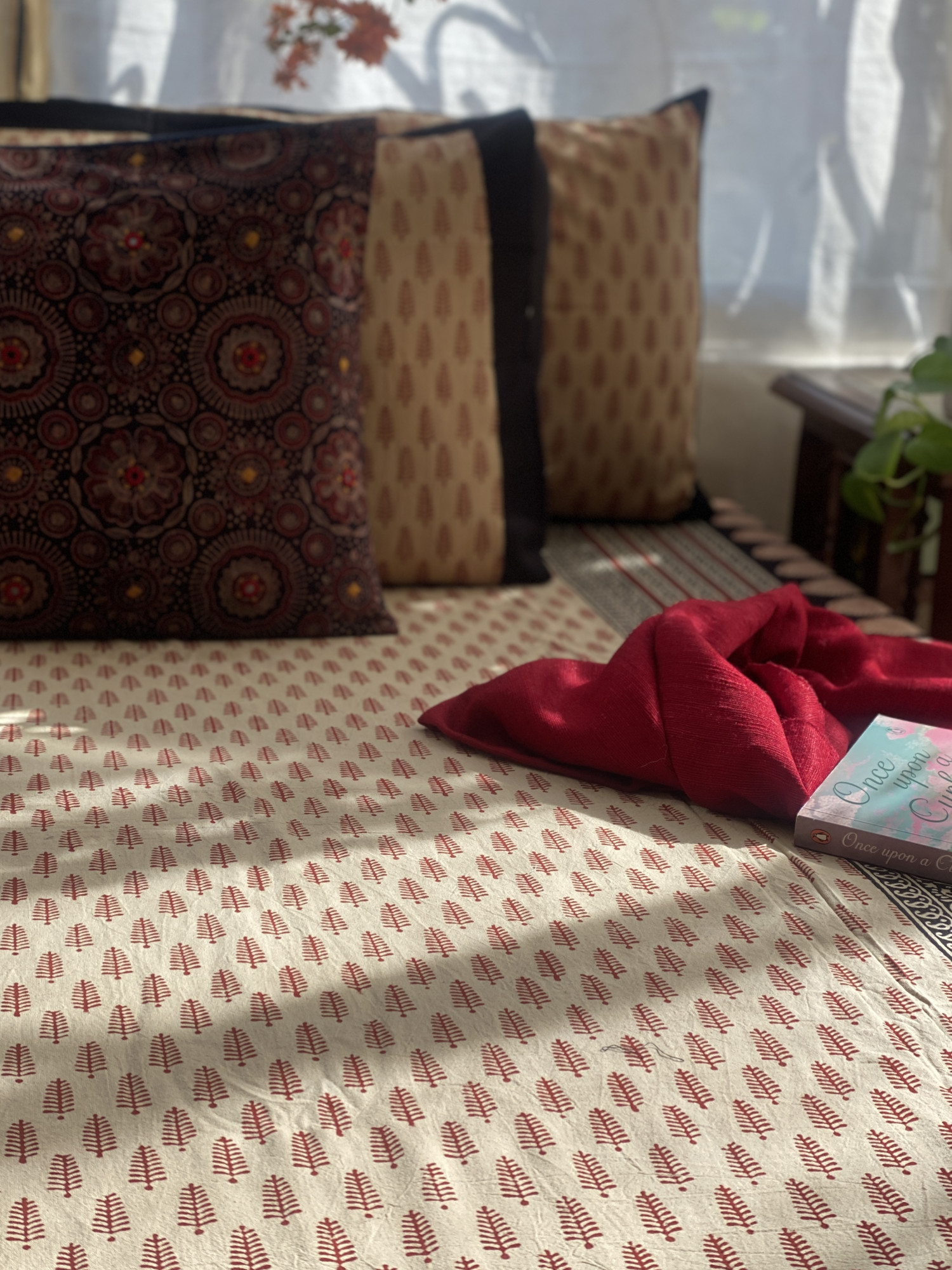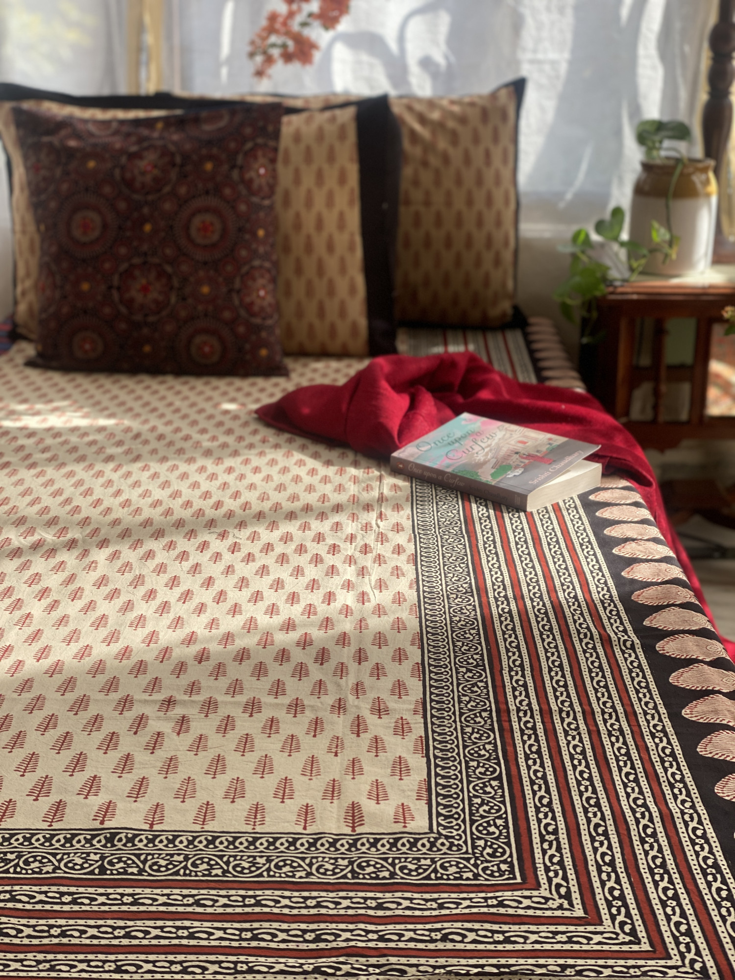 BEIGE "BAGH" HAND block print COTTON double bedsheet with A PAIR OF pillow covers