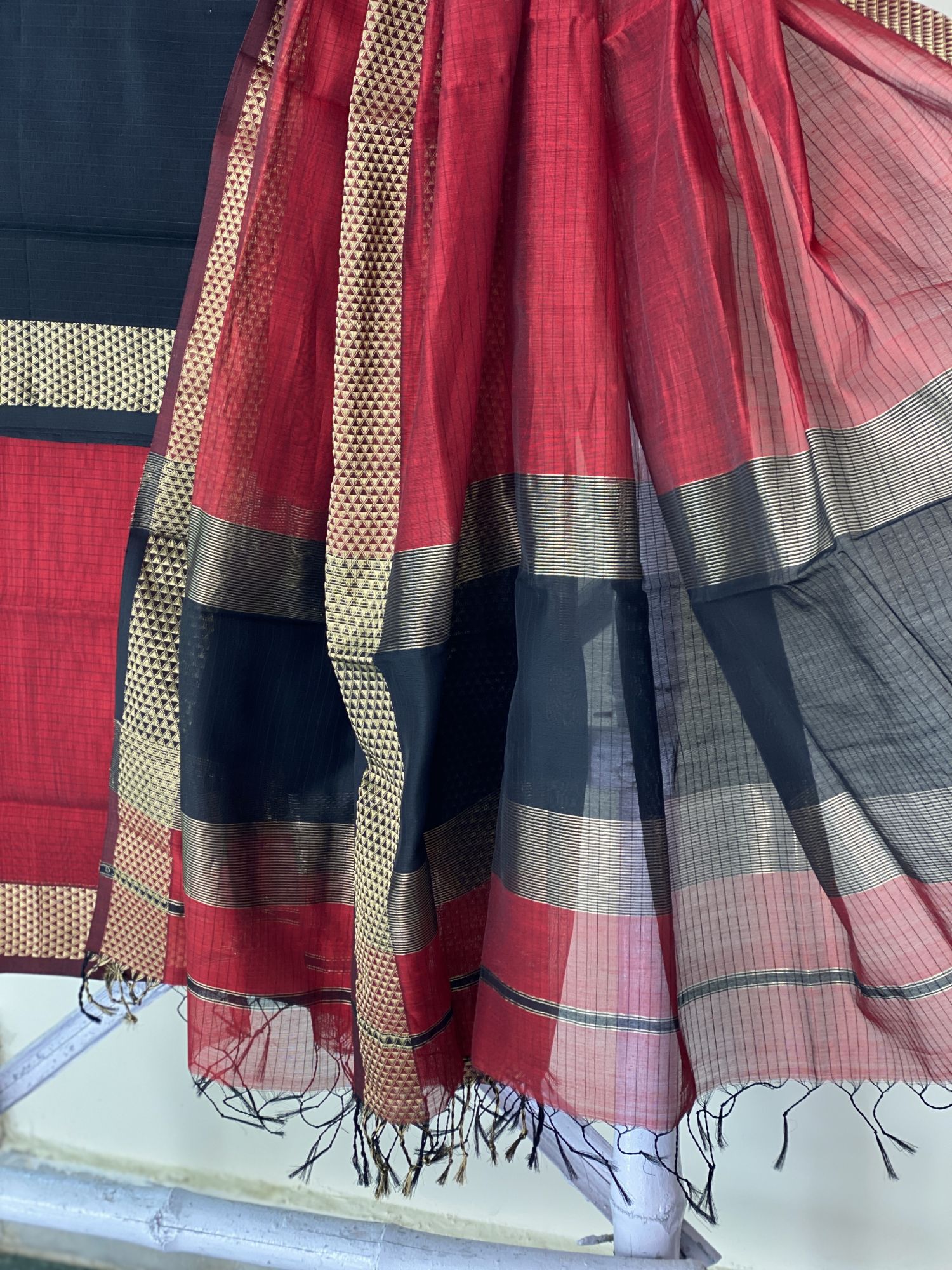 BOTTOM -RED ZARI WOVEN BORDER MAHESHWARI SILK & COTTON