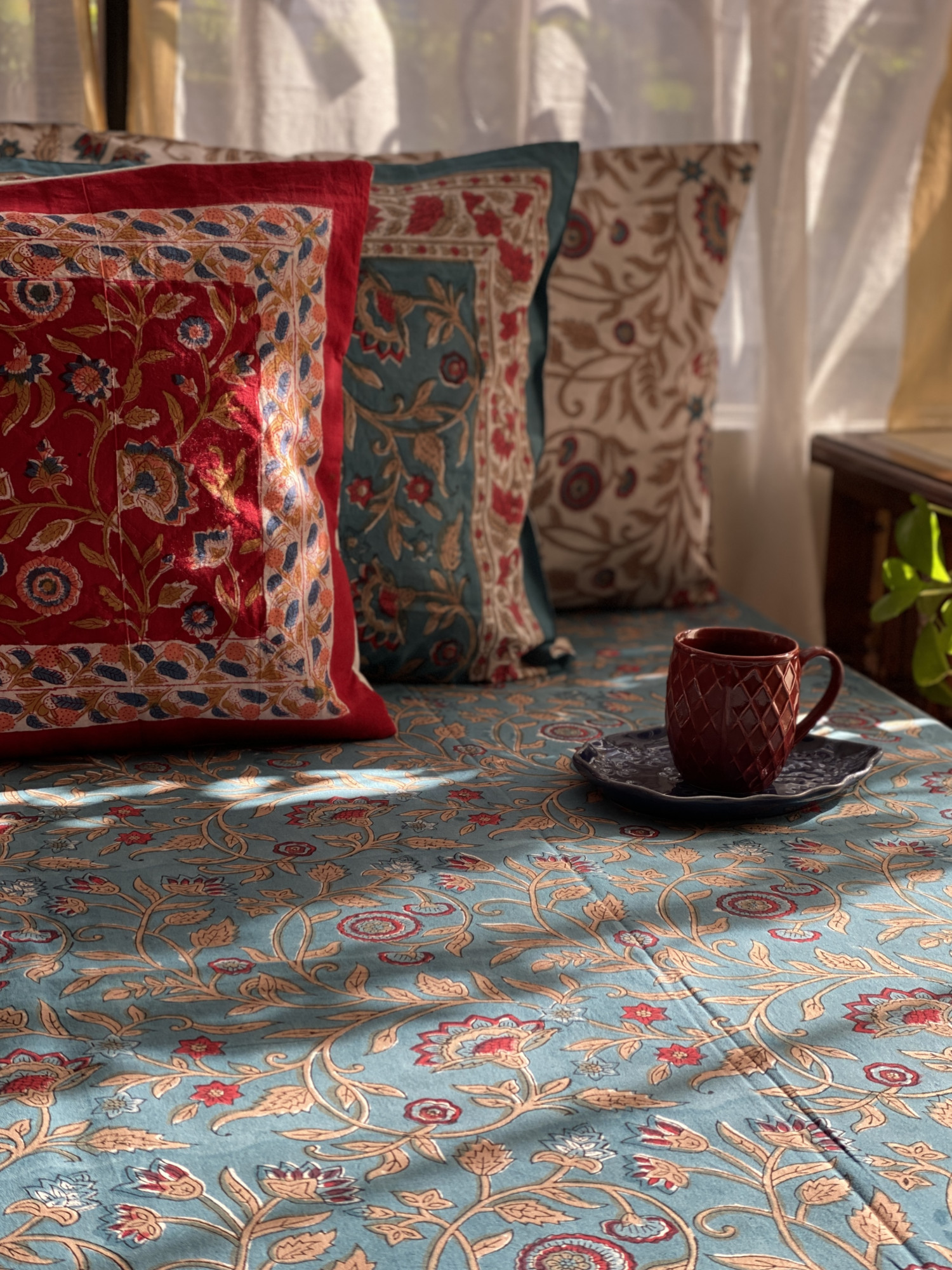 BLUE HAND block print COTTON double bedsheet with REVERSIBLE pillow covers