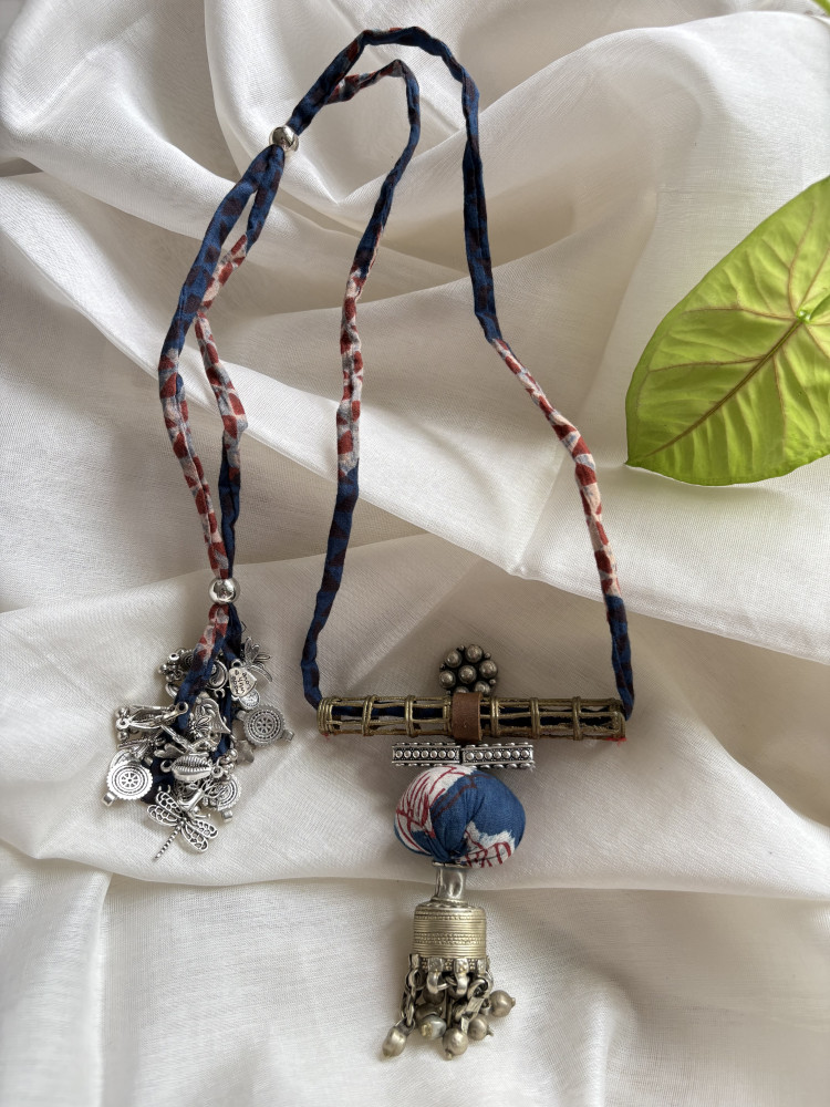 BRASS AND FABRIC Handcrafted ADJUSTABLE LONG NECKLACE