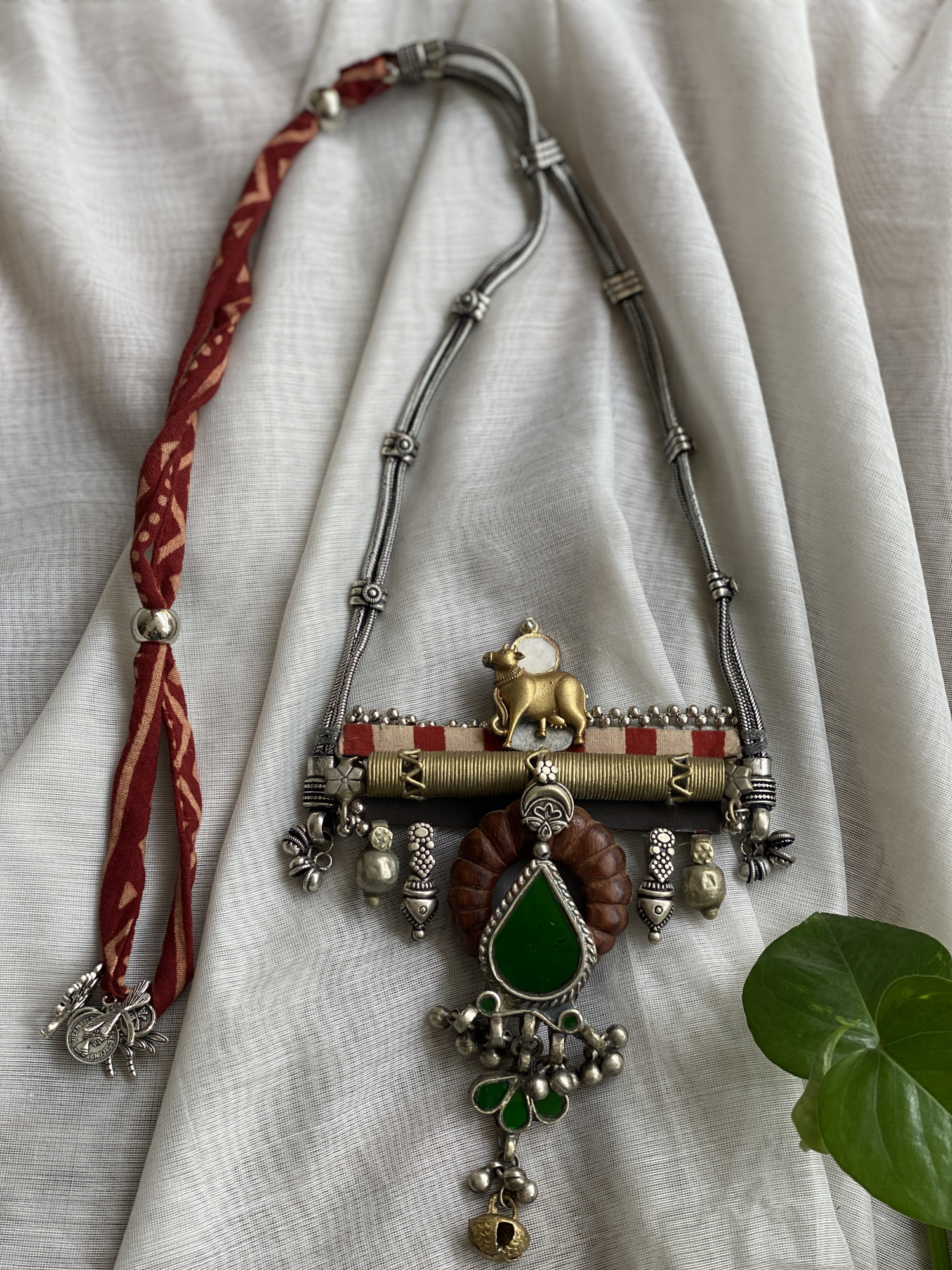 BRASS AND FABRIC Handcrafted ADJUSTABLE LONG NECKLACE