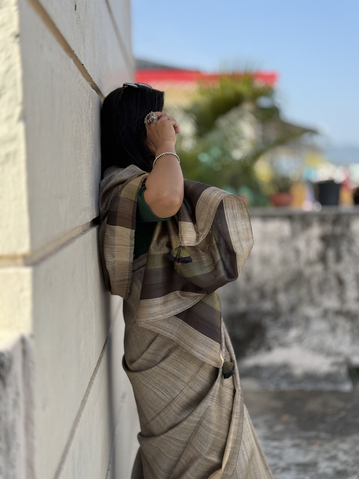 COMES WITH ITS OWN GREY SILK BLOUSE AND AN EXTRA GREEN GICHA TUSSAR SILK BLOUSE PIECE (90 CMS)