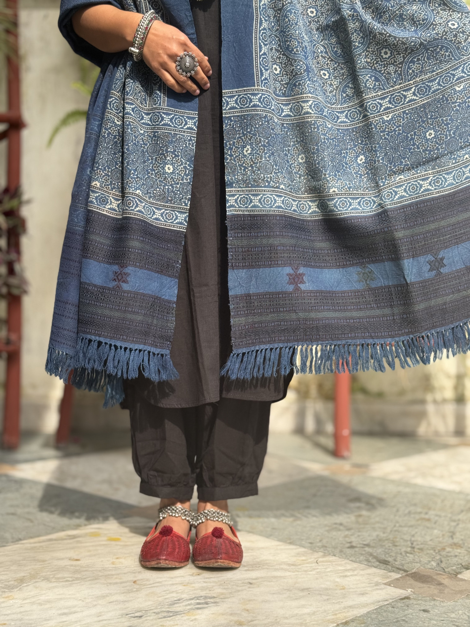 INDIGO PURE WOOL ajrakh hand dyed shaWL