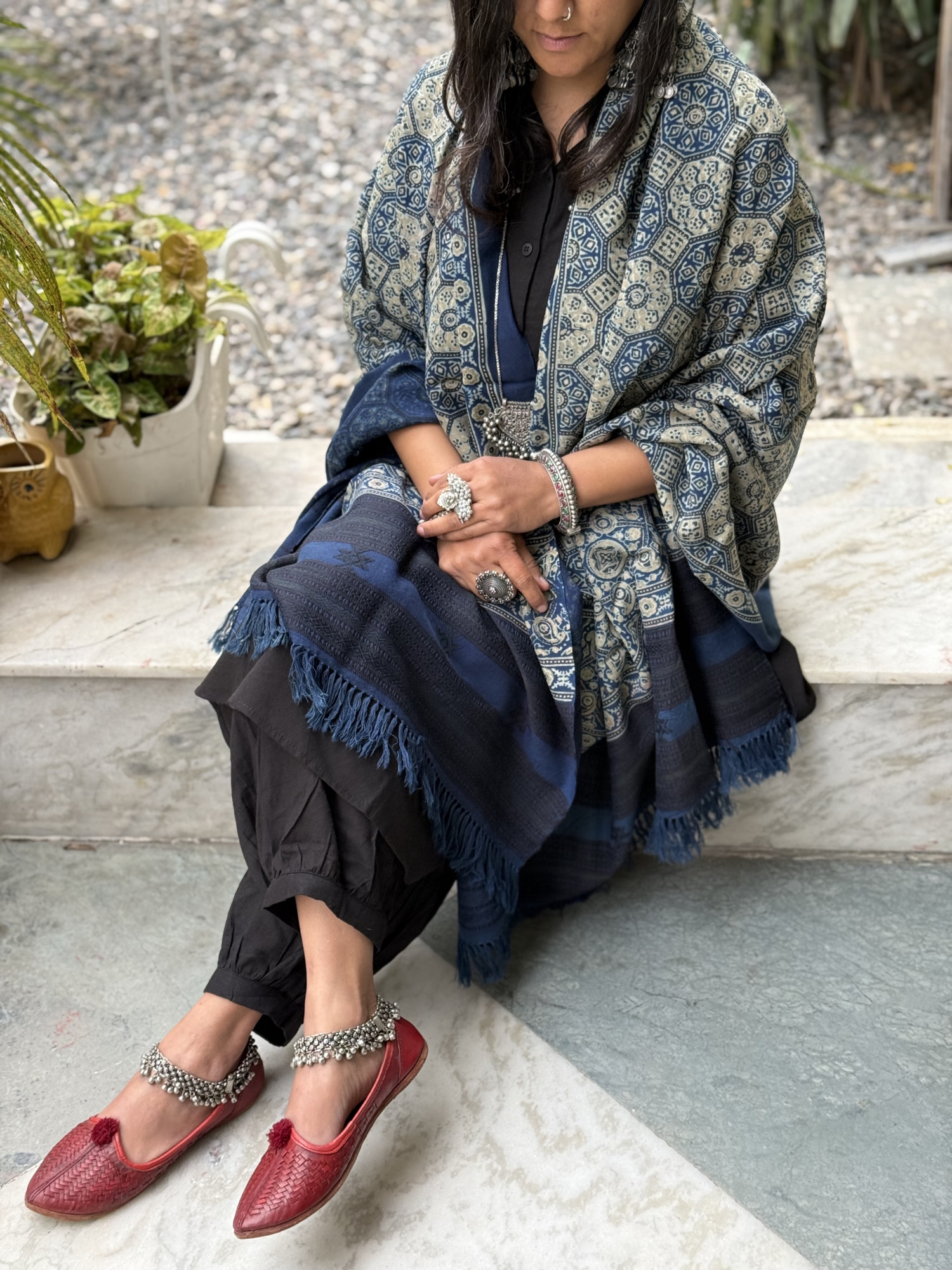 INDIGO PURE WOOL ajrakh hand dyed shaWL