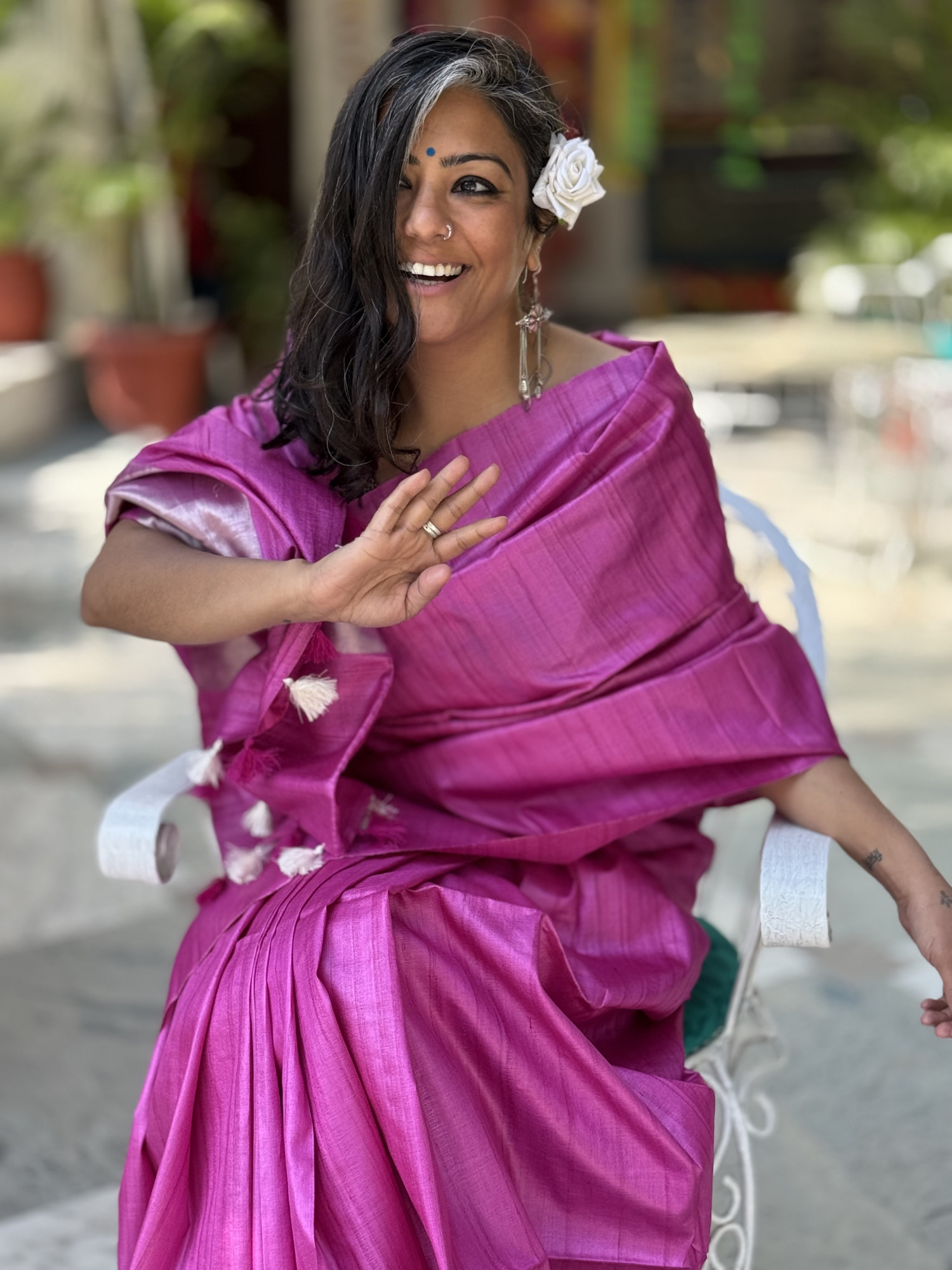 MAGENTA DESI TUSSAR WOVEN SILK sari with WITH DOUBLE ZARI patta WOVEN PALLA accessorised with tassles.