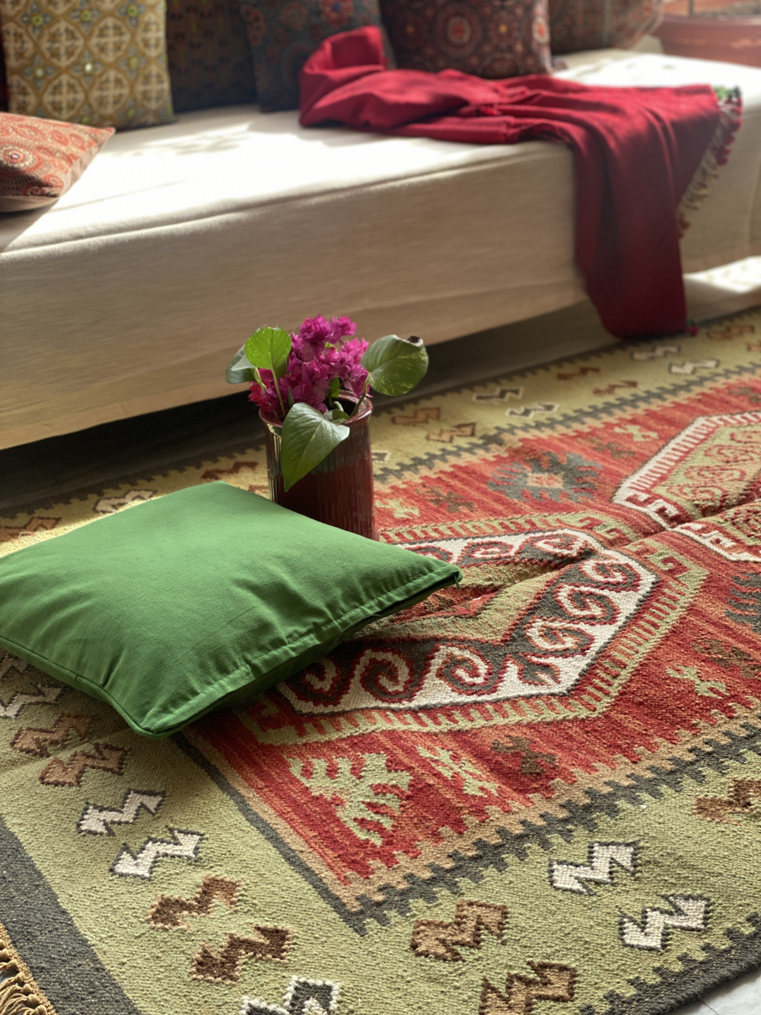 MULTI COLOR WOOL & COTTON KILIM HAND WOVEN DURRIE.