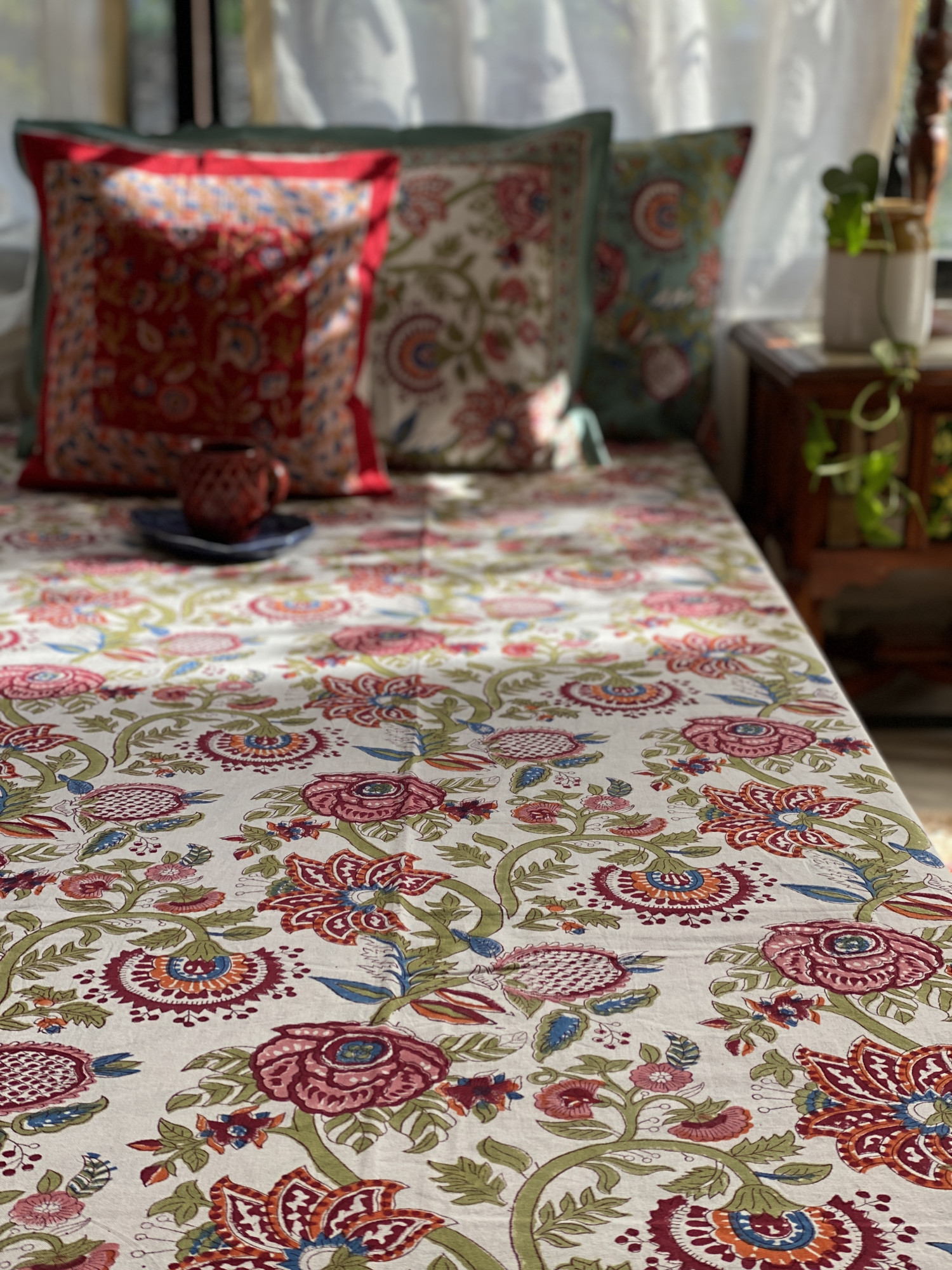 MULTI COLOUR HAND block print COTTON double bedsheet with REVERSIBLE pillow covers