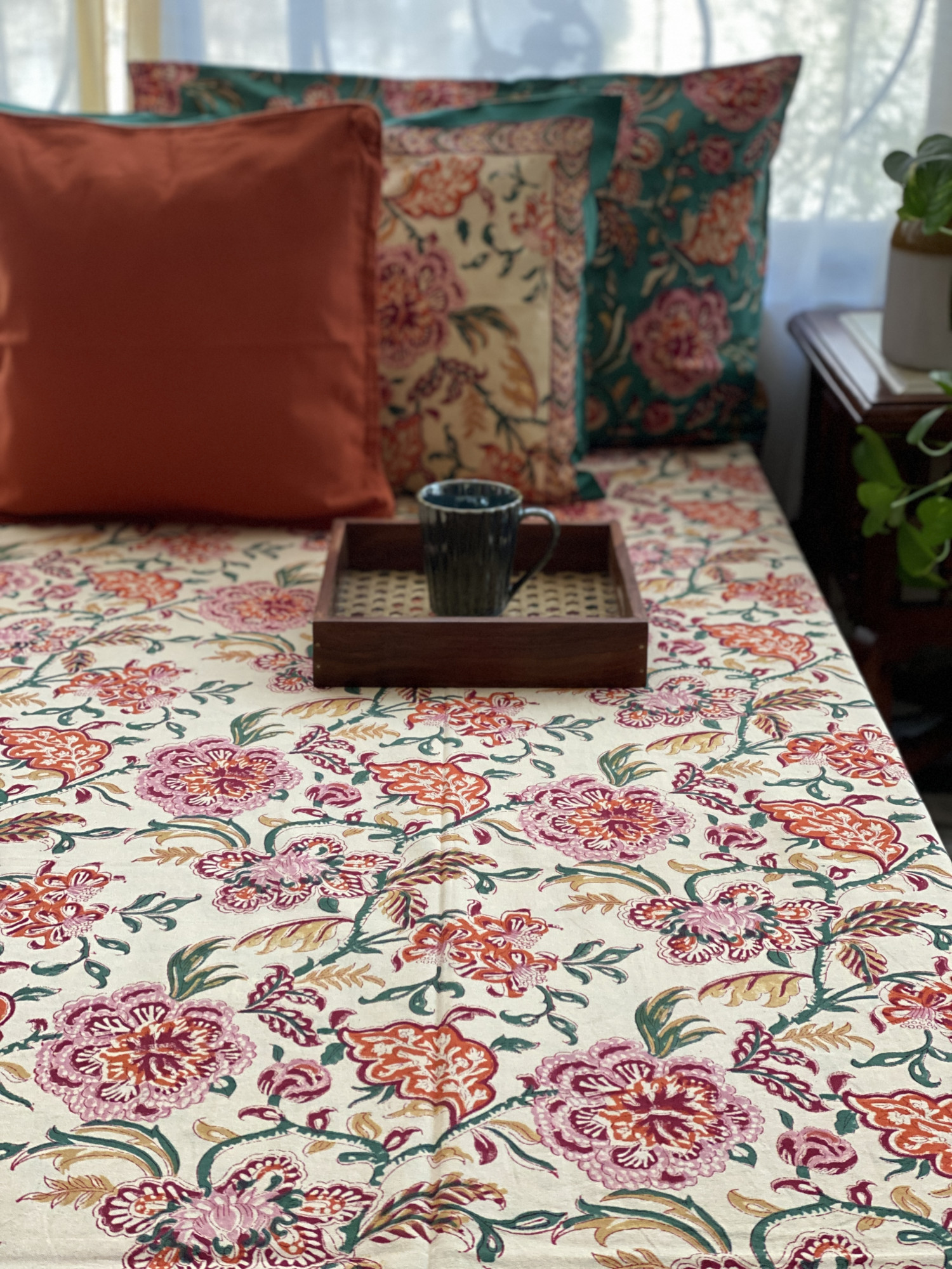 MULTI COLOUR HAND block print COTTON double bedsheet with REVERSIBLE pillow covers