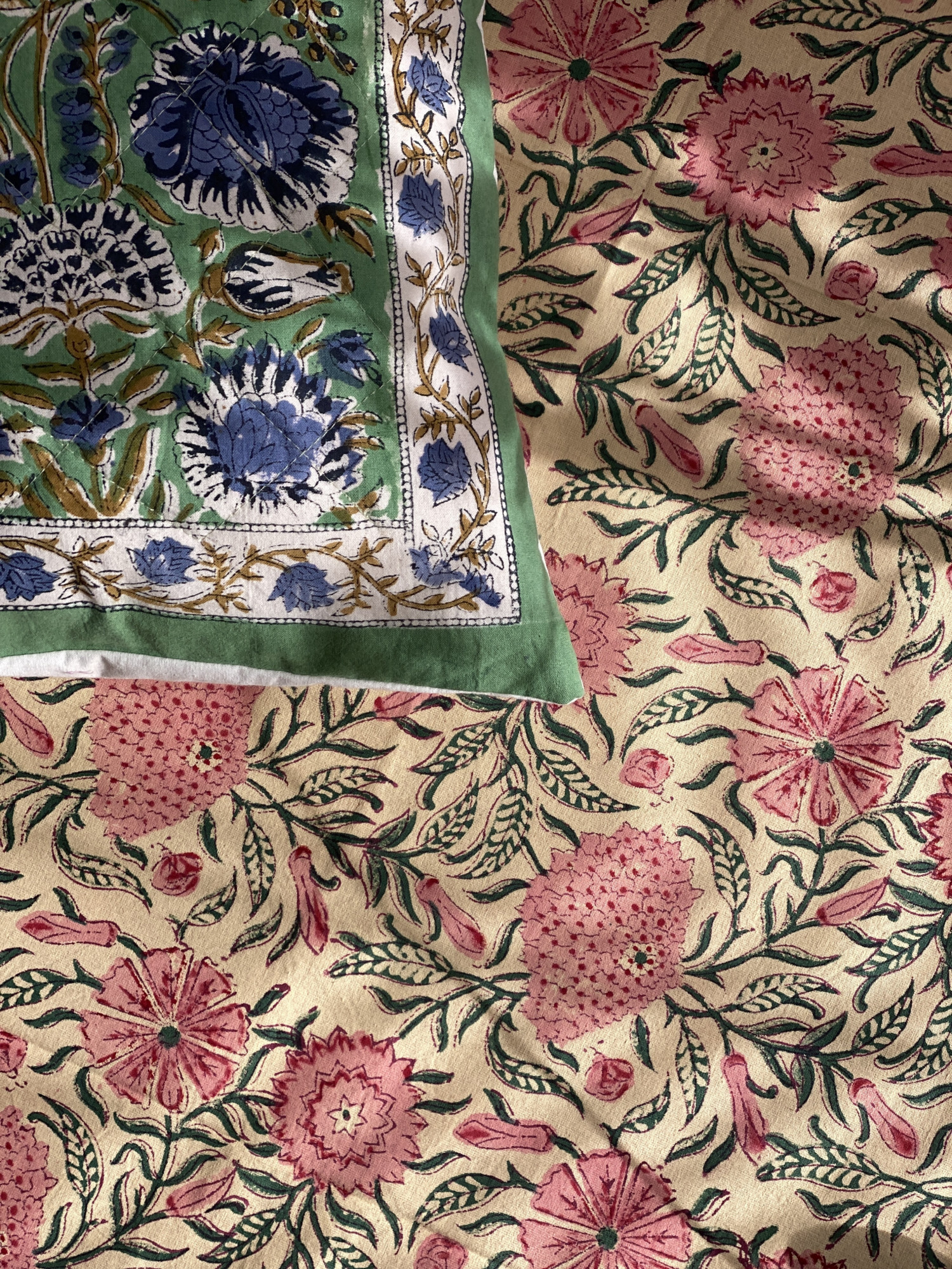 MULTI COLOUR HAND block print single COTTON bedsheet Size: 90" x 60"inch [2.30m x 1.5m] Wash cotton fabrics gently and separately in cold water. Do not soak and dry in shade. These are handcrafted items, please cherish the little imperfections. Happy Handloom :)