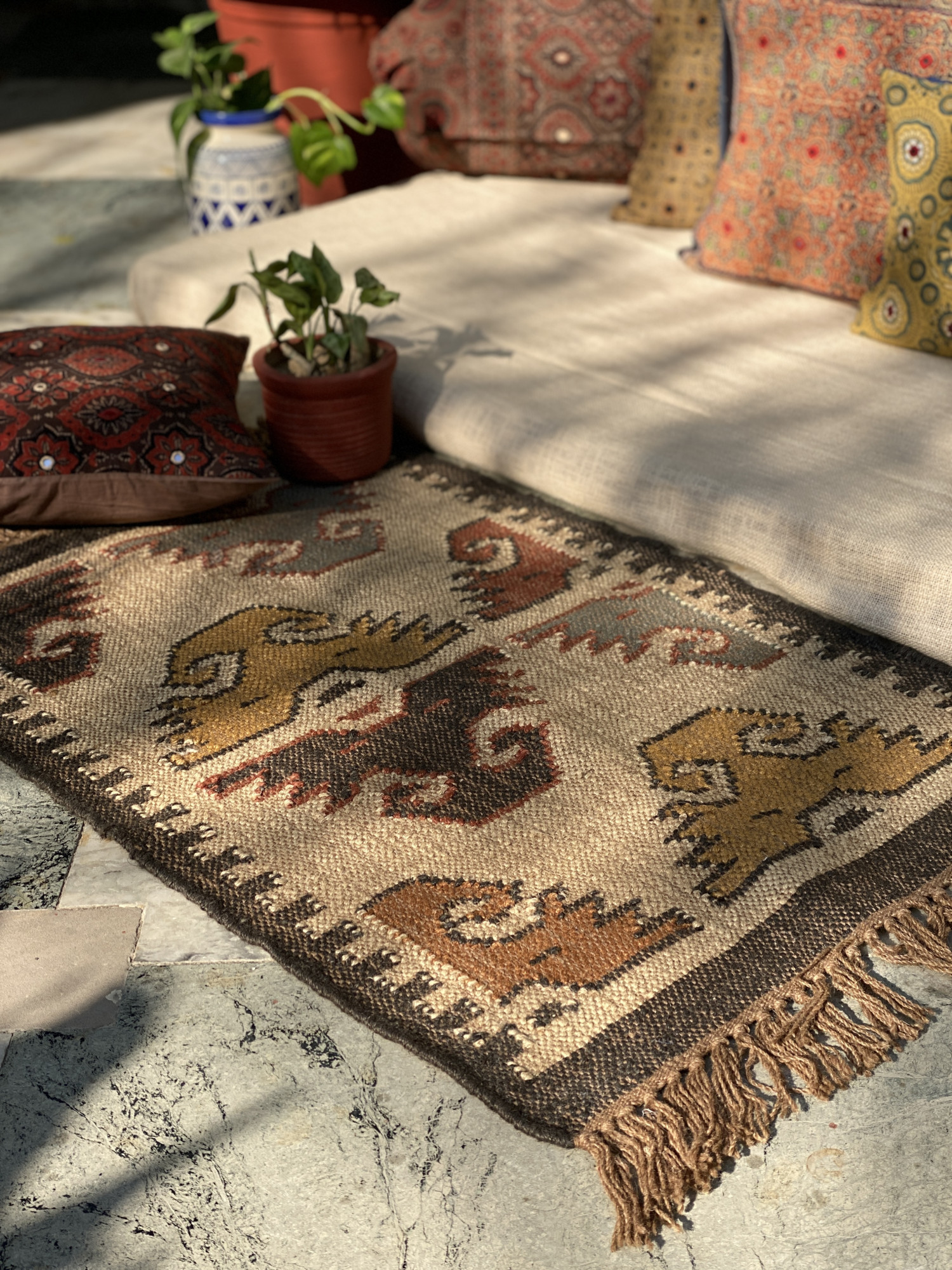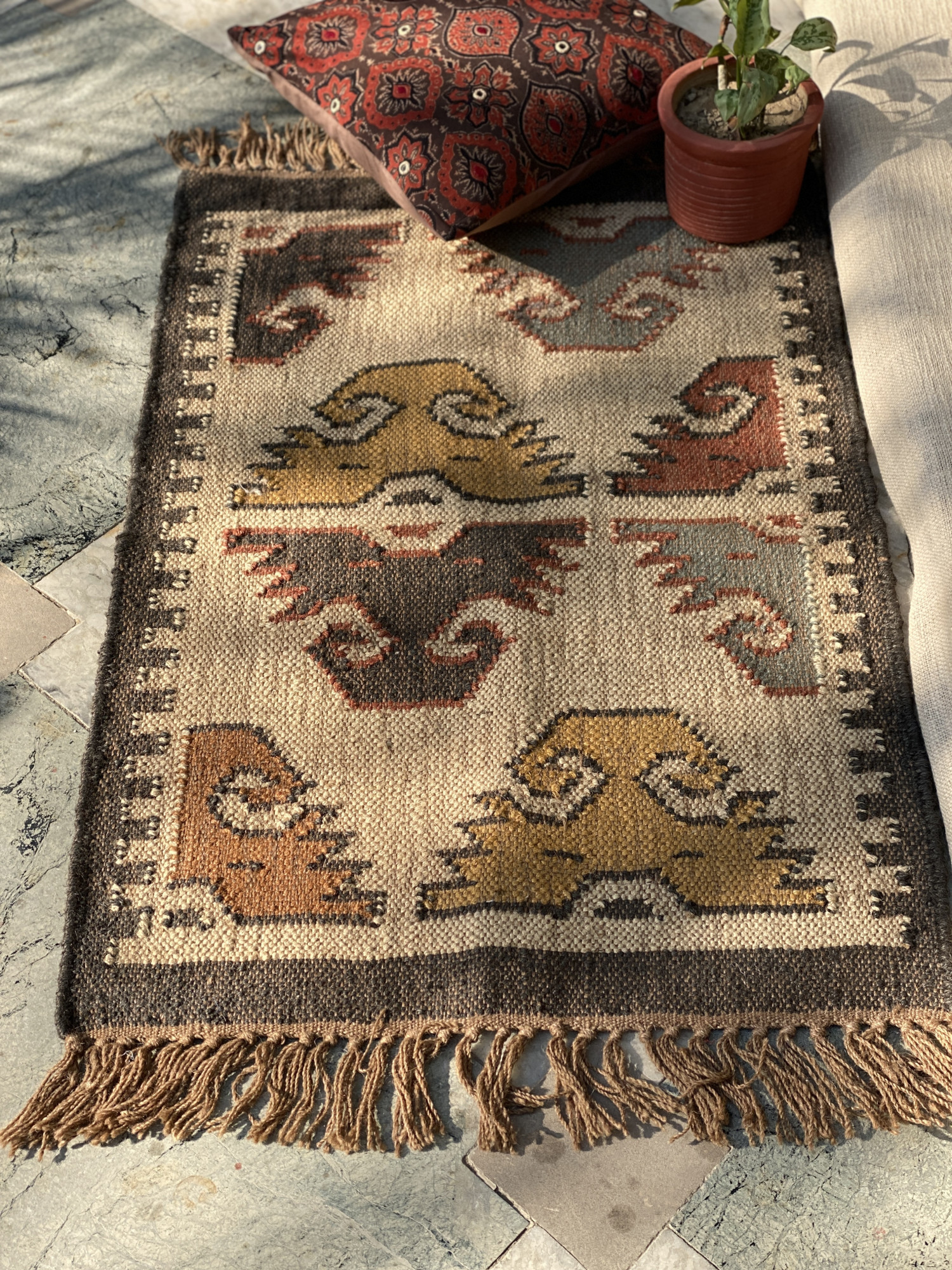 MULTI COLOUR WOOL & JUTE KILIM HAND WOVEN DURRIE