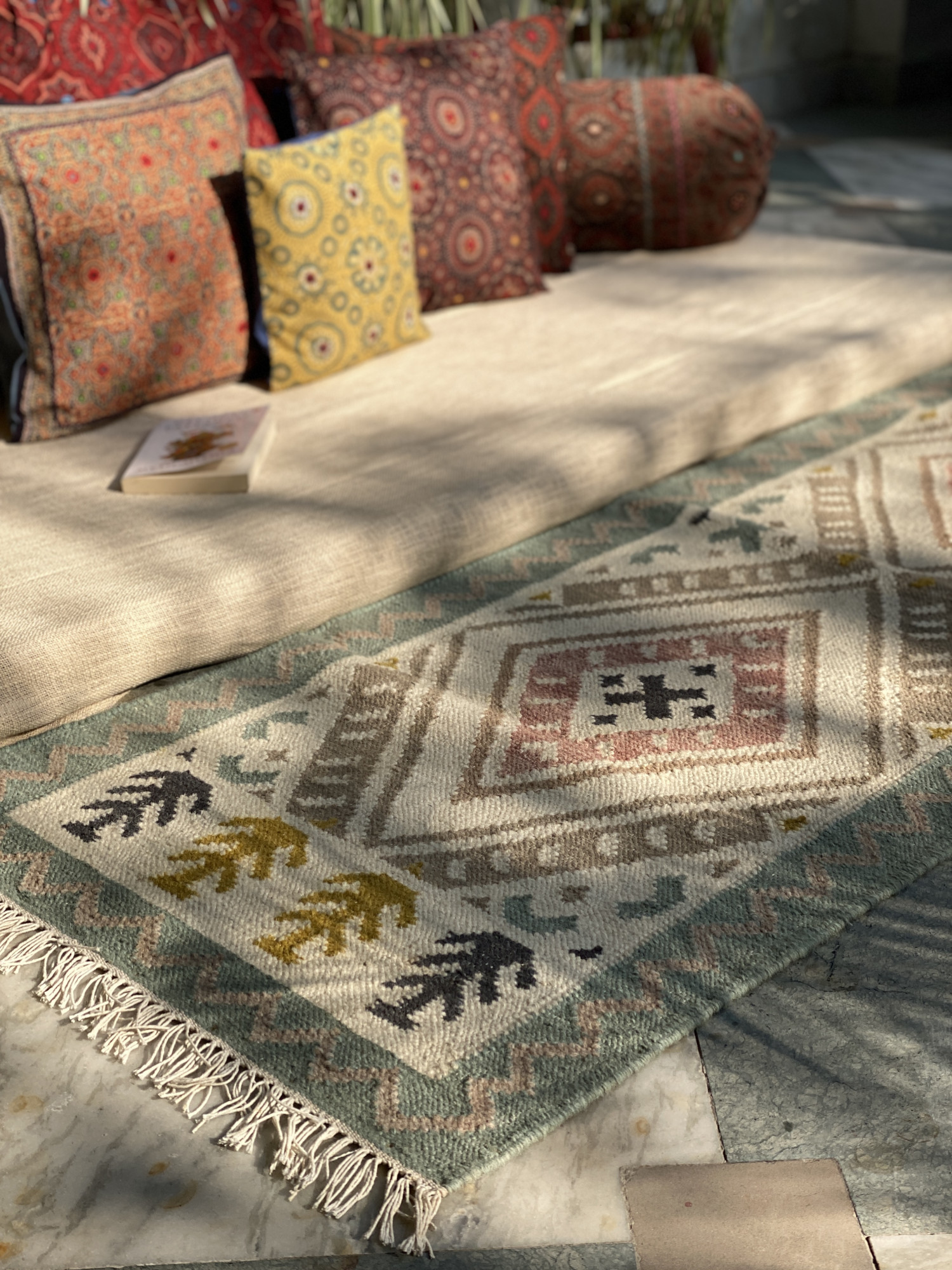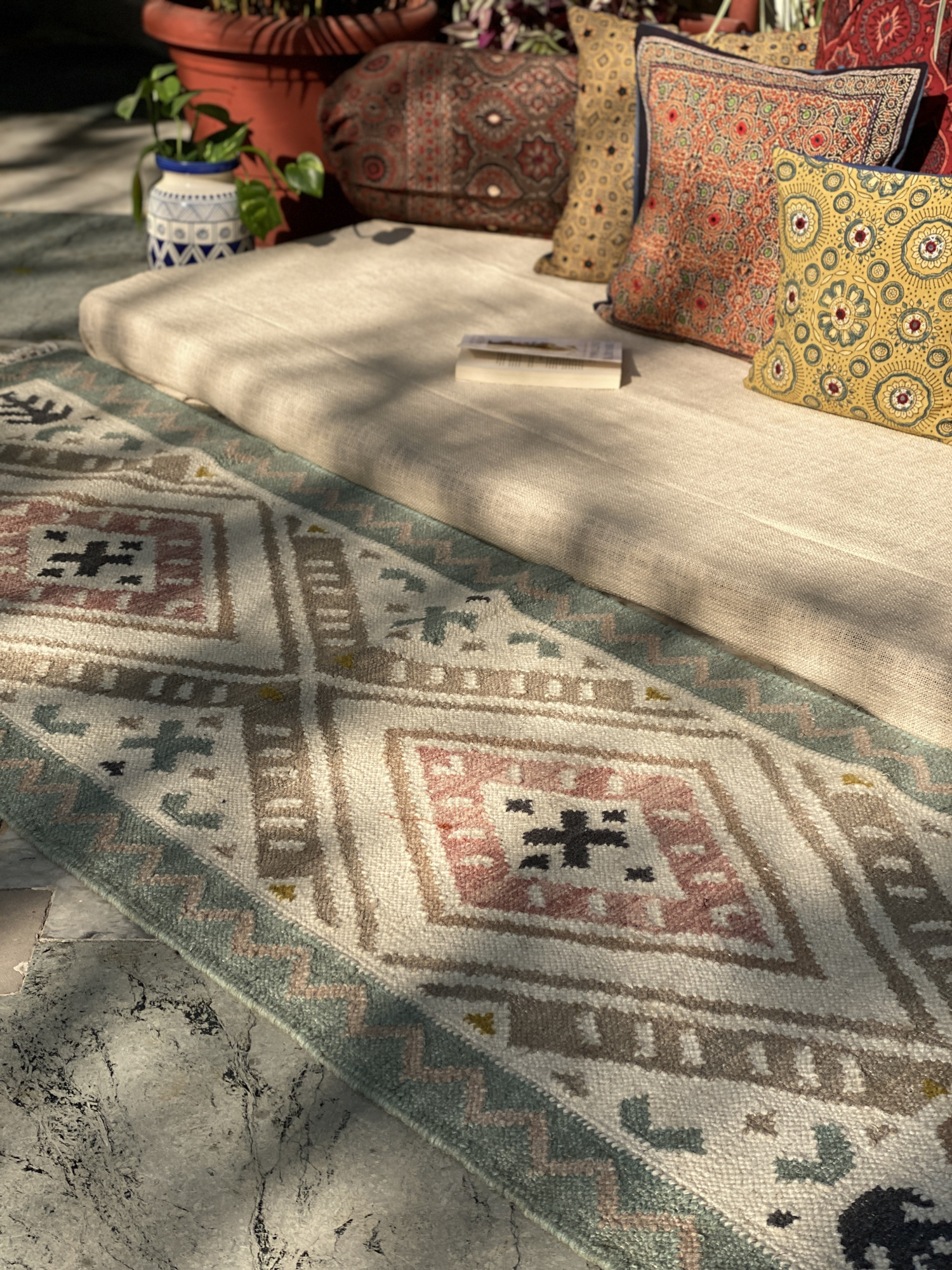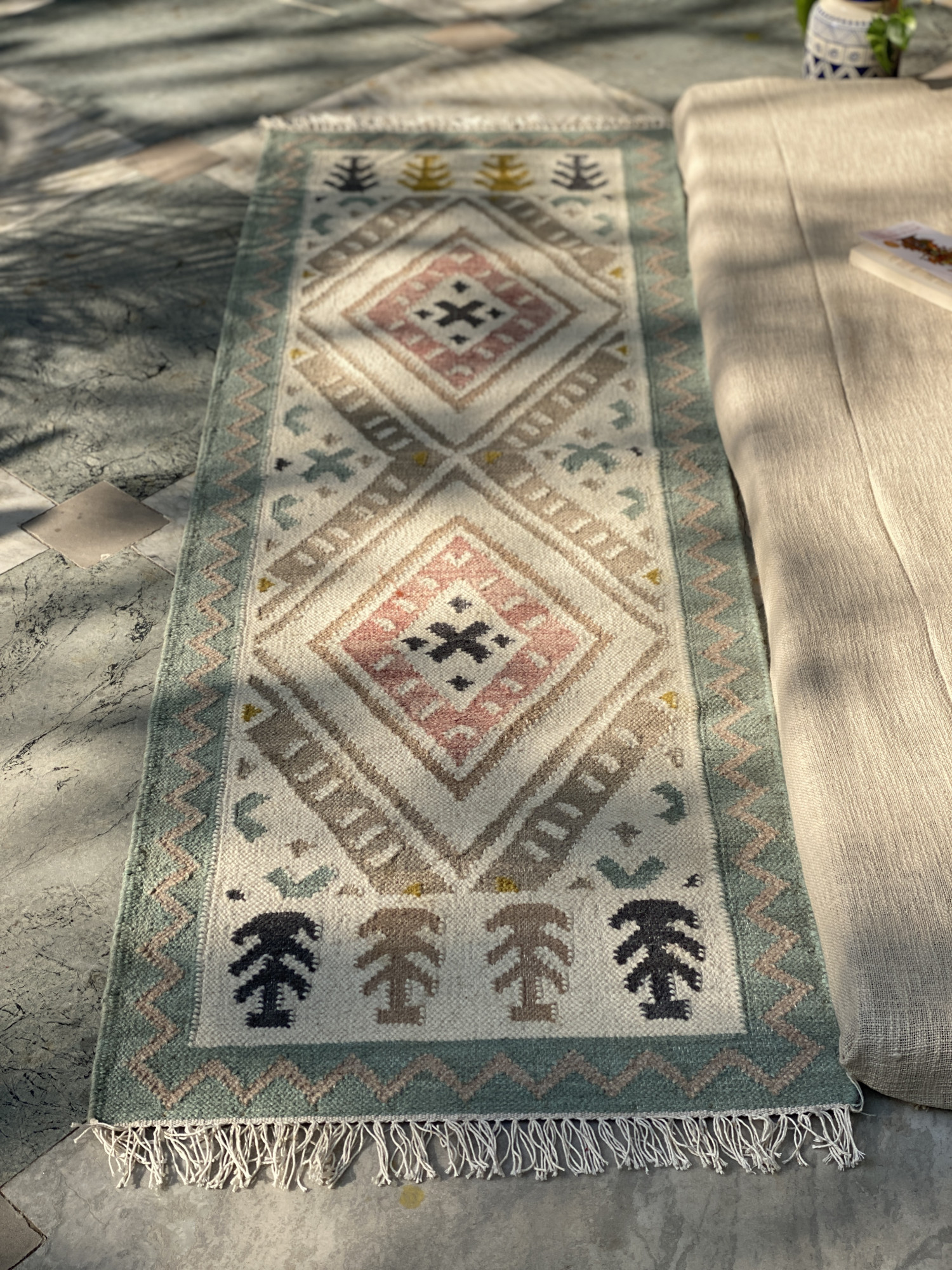 MULTI COLOUR WOOL & COTTON KILIM HAND WOVEN DURRIE