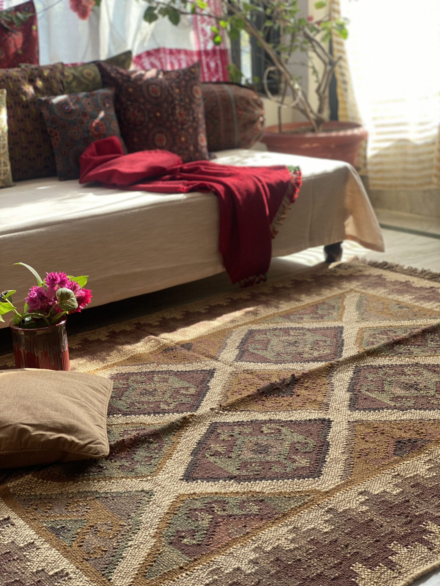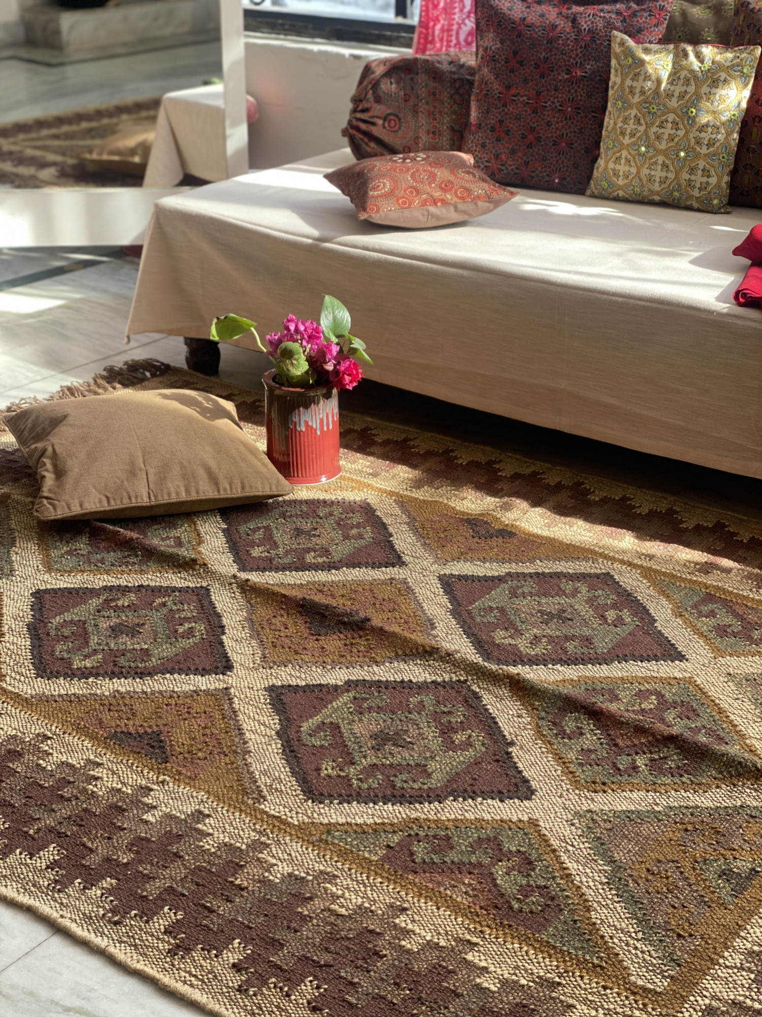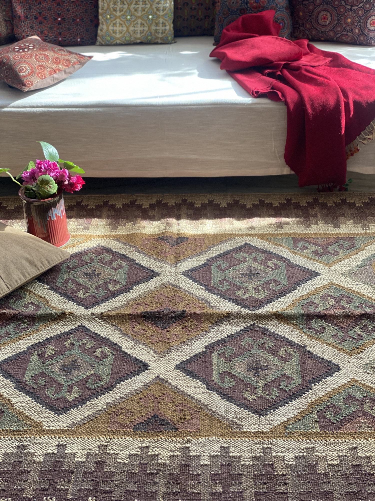 MULTI COLOUR WOOL & JUTE KILIM HAND WOVEN DURRIE