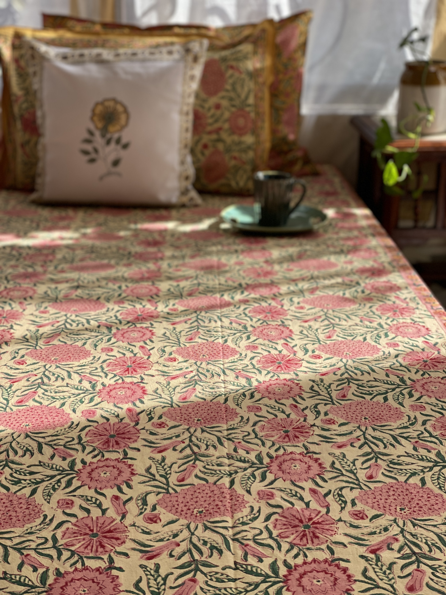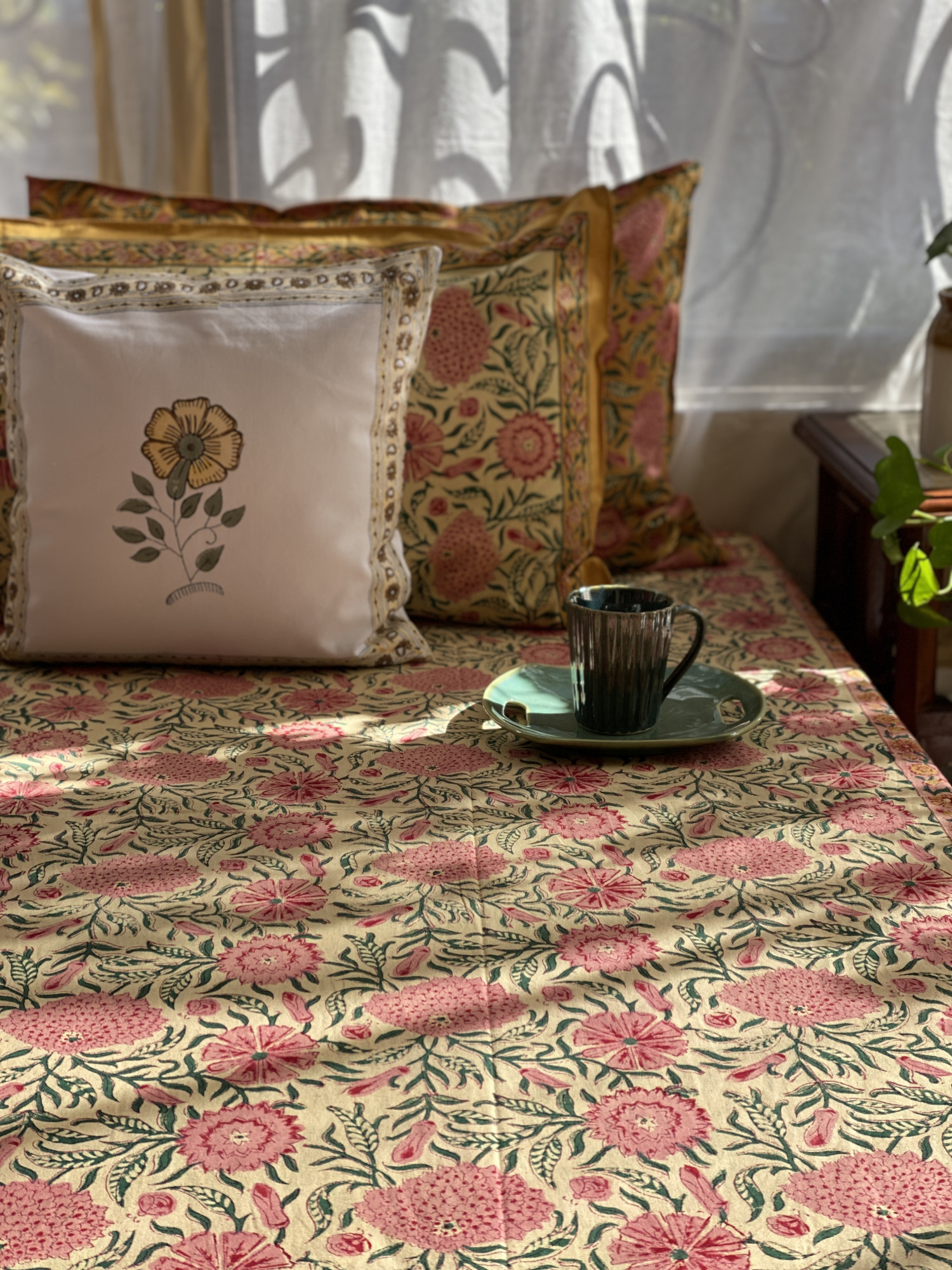MUSTARD HAND block print COTTON double bedsheet with REVERSIBLE pillow covers