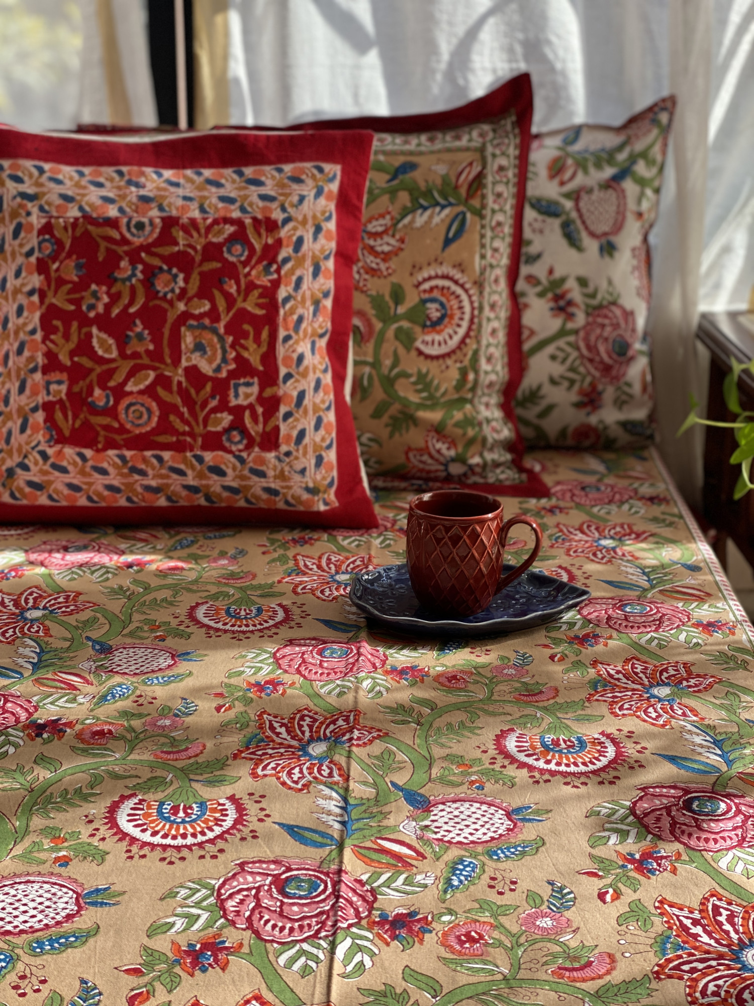 MUSTARD HAND block print COTTON KING bedsheet with REVERSIBLE pillow covers