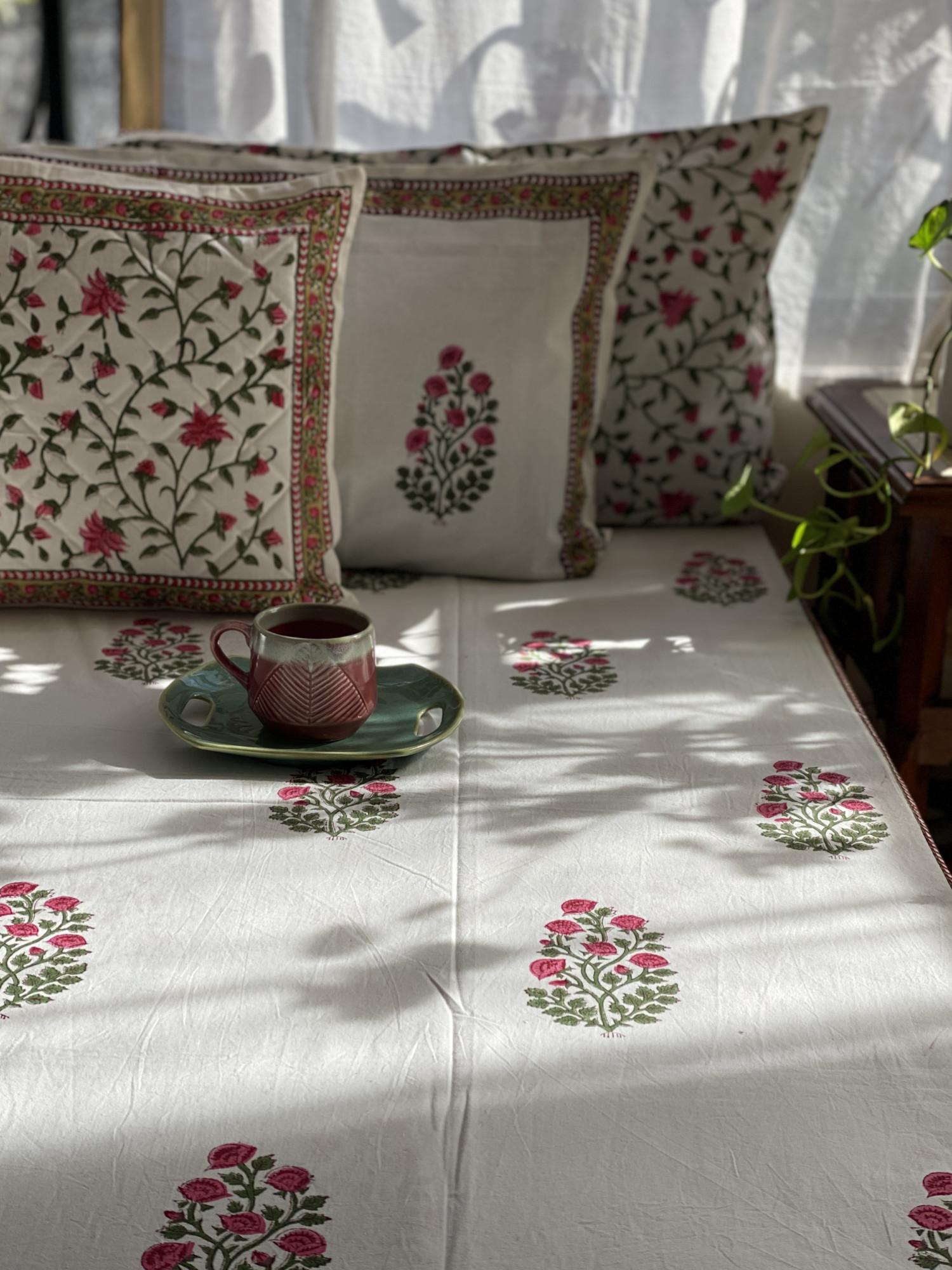 OFF WHITE HAND block print COTTON double bedsheet with REVERSIBLE pillow covers