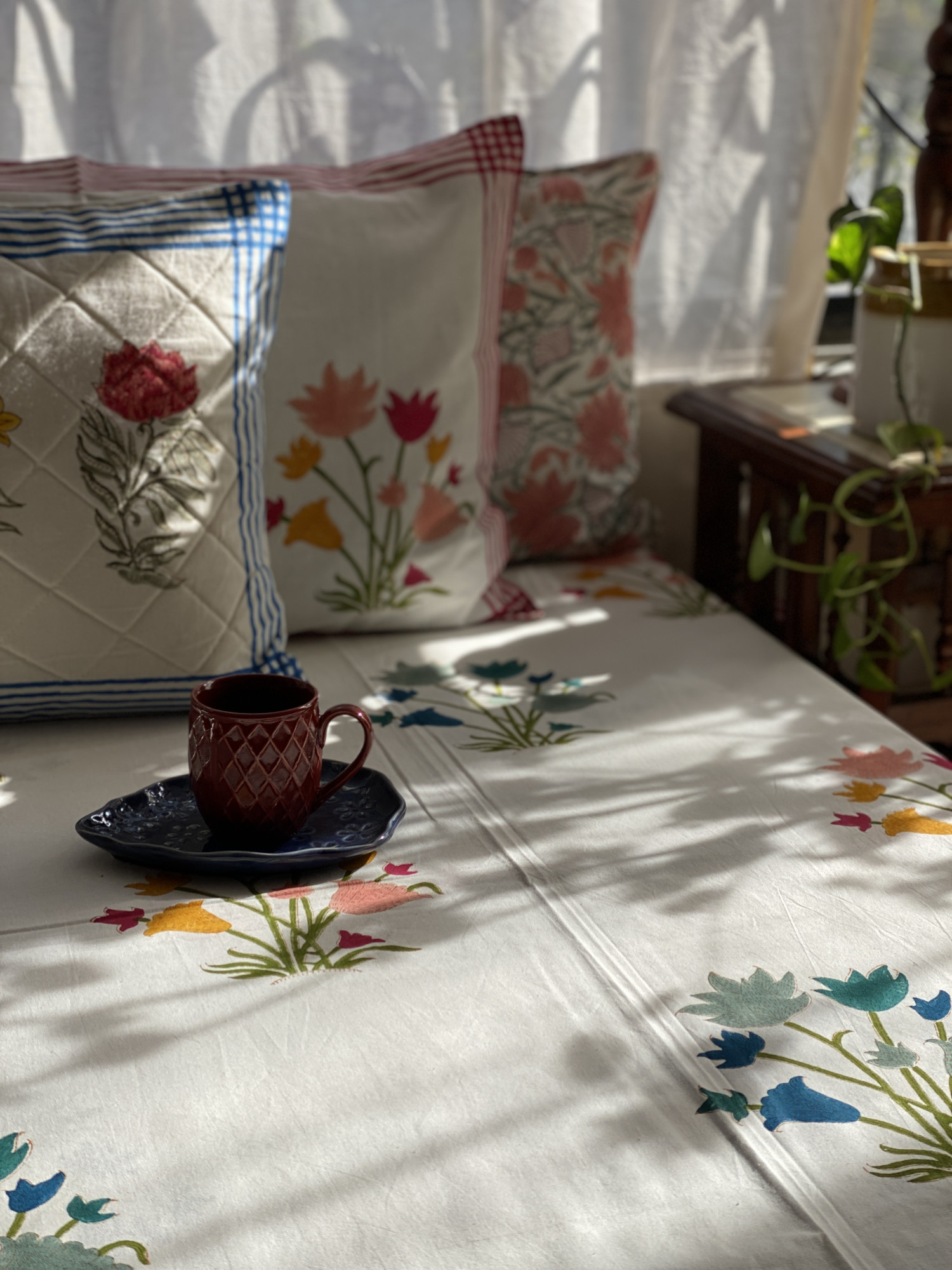 OFF WHITE HAND block print COTTON double bedsheet with REVERSIBLE pillow covers