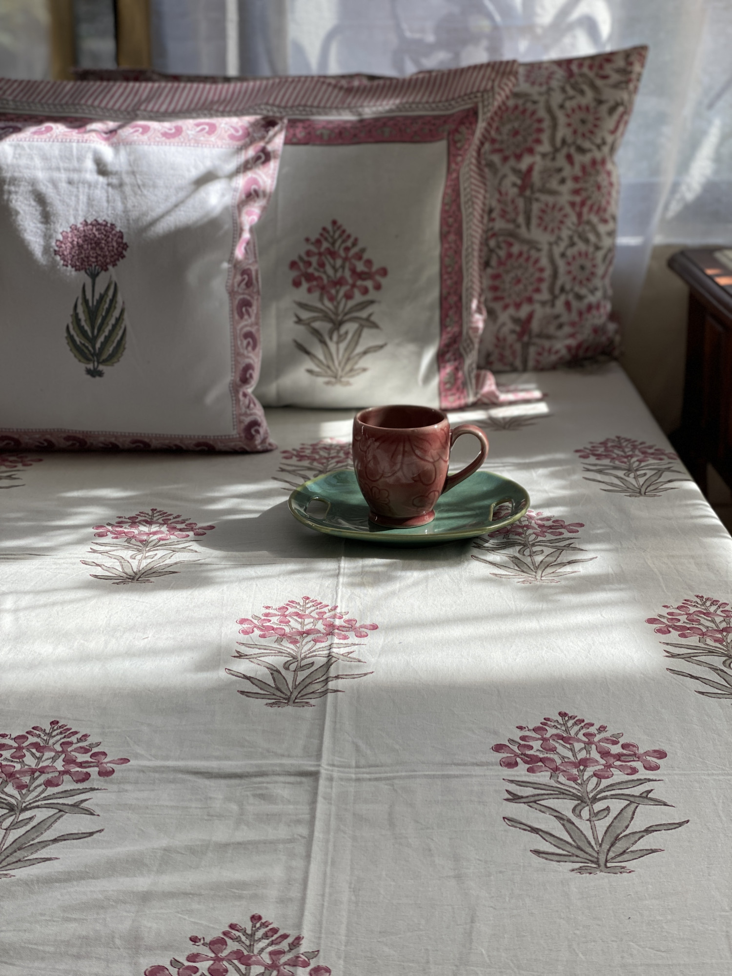 OFF WHITE HAND block print COTTON double bedsheet with REVERSIBLE pillow covers