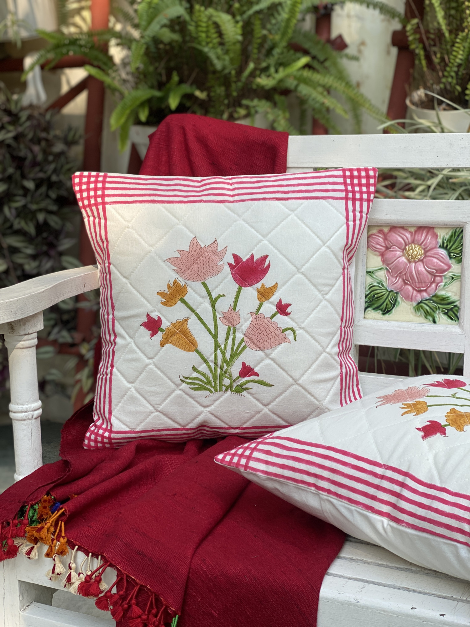 Please wash cotton fabrics gently and separately in cold water. Do not soak and dry in shade. These are handcrafted cushions, please cherish the little imperfections. Happy Handloom :)