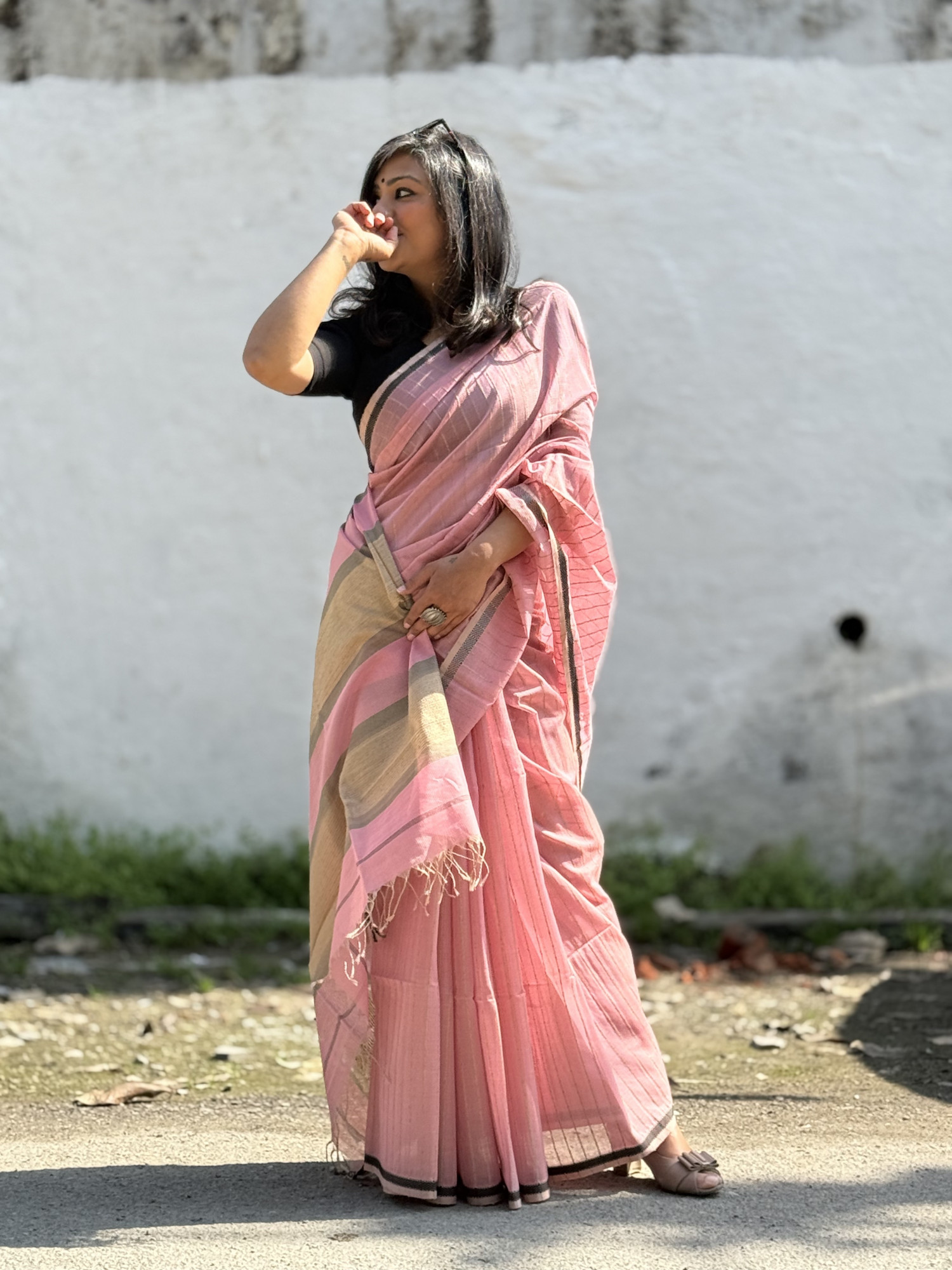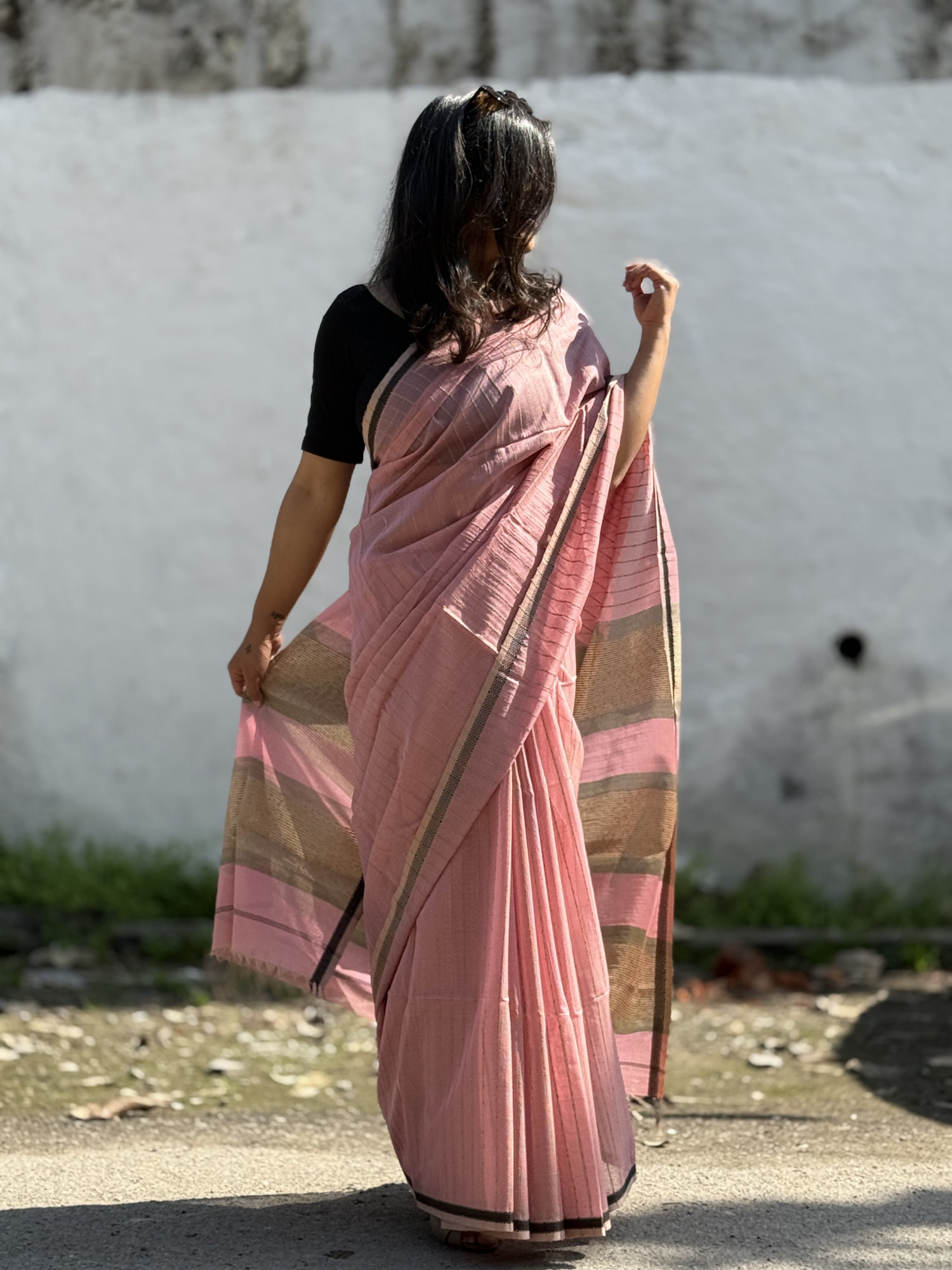 Comes with its own PINK MAHESHWARI SILK AND COTTON Blouse
