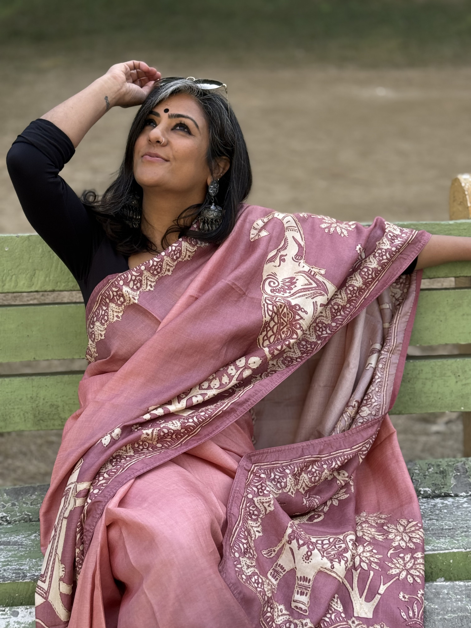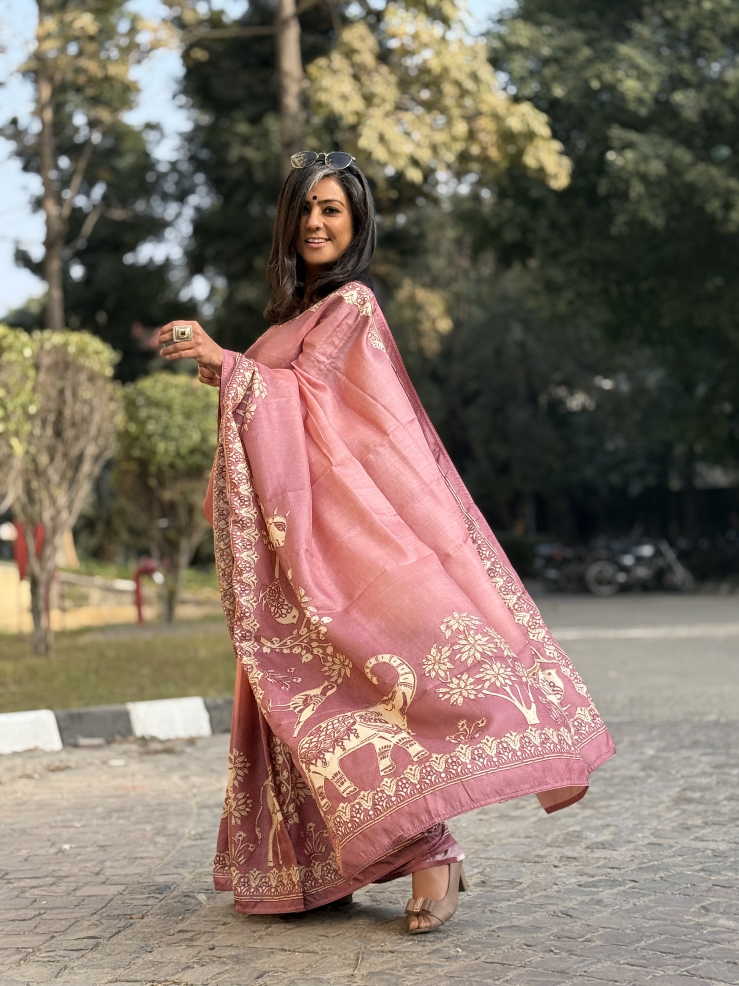 COMES WITH ITS OWN PINK TUSSAR SILK BLOUSE AND AN EXTRA BLACK COTTON TUSSAR BLOUSE PIECE (90 CMS)