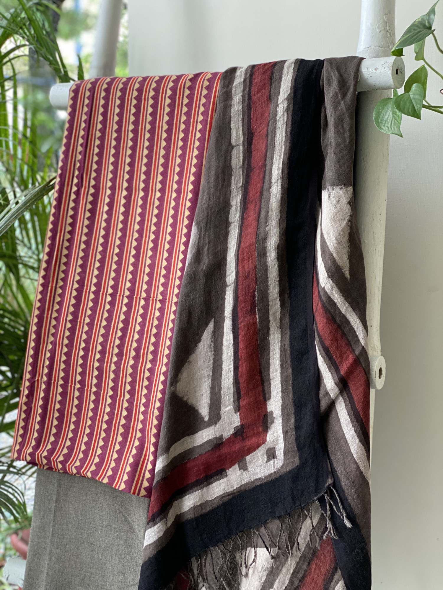 RUBY HAND BLOCK PRINT COTTON SHIRT AND A GREY PLAIN WOVEN COTTON BOTTOM, PAIRED WITH A GREY HAND BLOCK PRINTED COTTON LINEN DUPATTA.